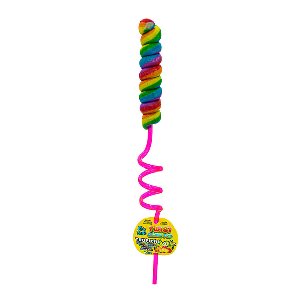 Pirulito Kids Zone Twist Straw Pop Sabores Sortidos 44g com 1 Unidade