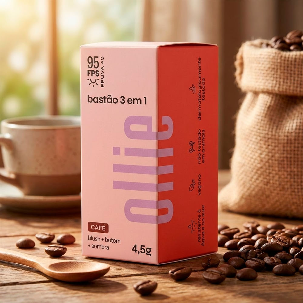 Bastão Ollie 3 em 1 Blush Batom e Sombra FPS 95 Cor Café 4,5g