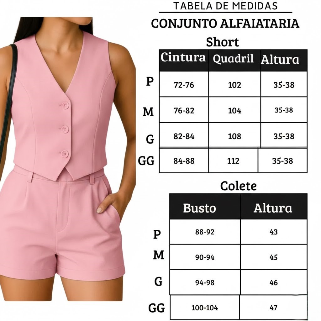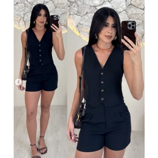 Conjunto Feminino Alfaiataria Luxo - Colete e Short Elegante