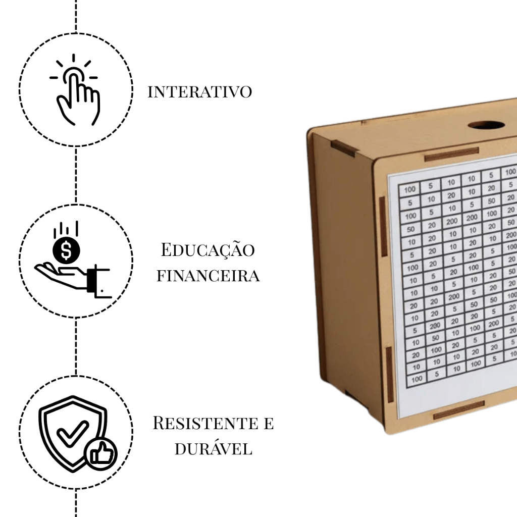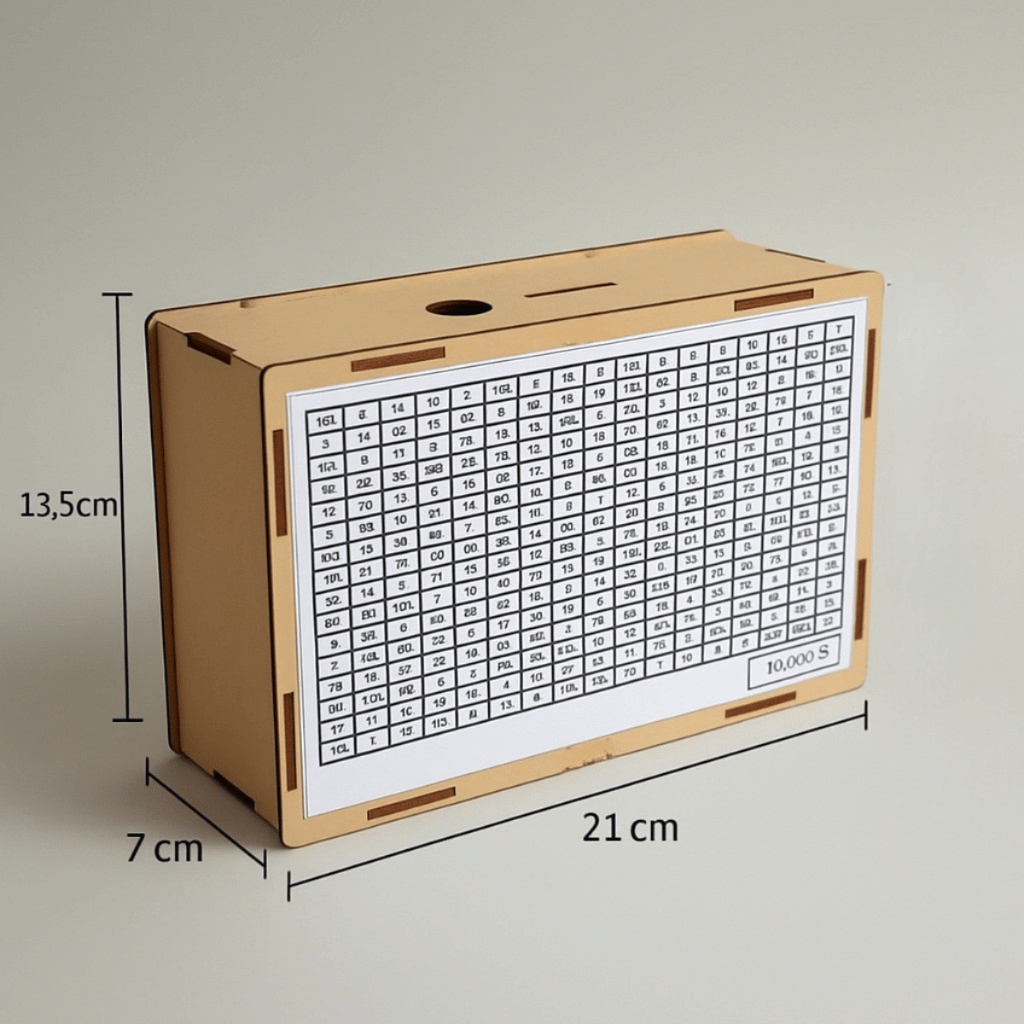 Cofre Cofrinho Desafio 10Mil Poupança Metodo Japones - Madeira MDF - 21x14x7cm