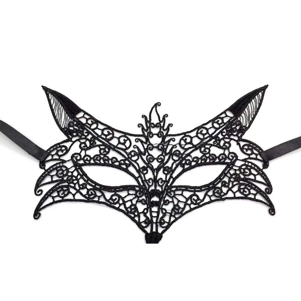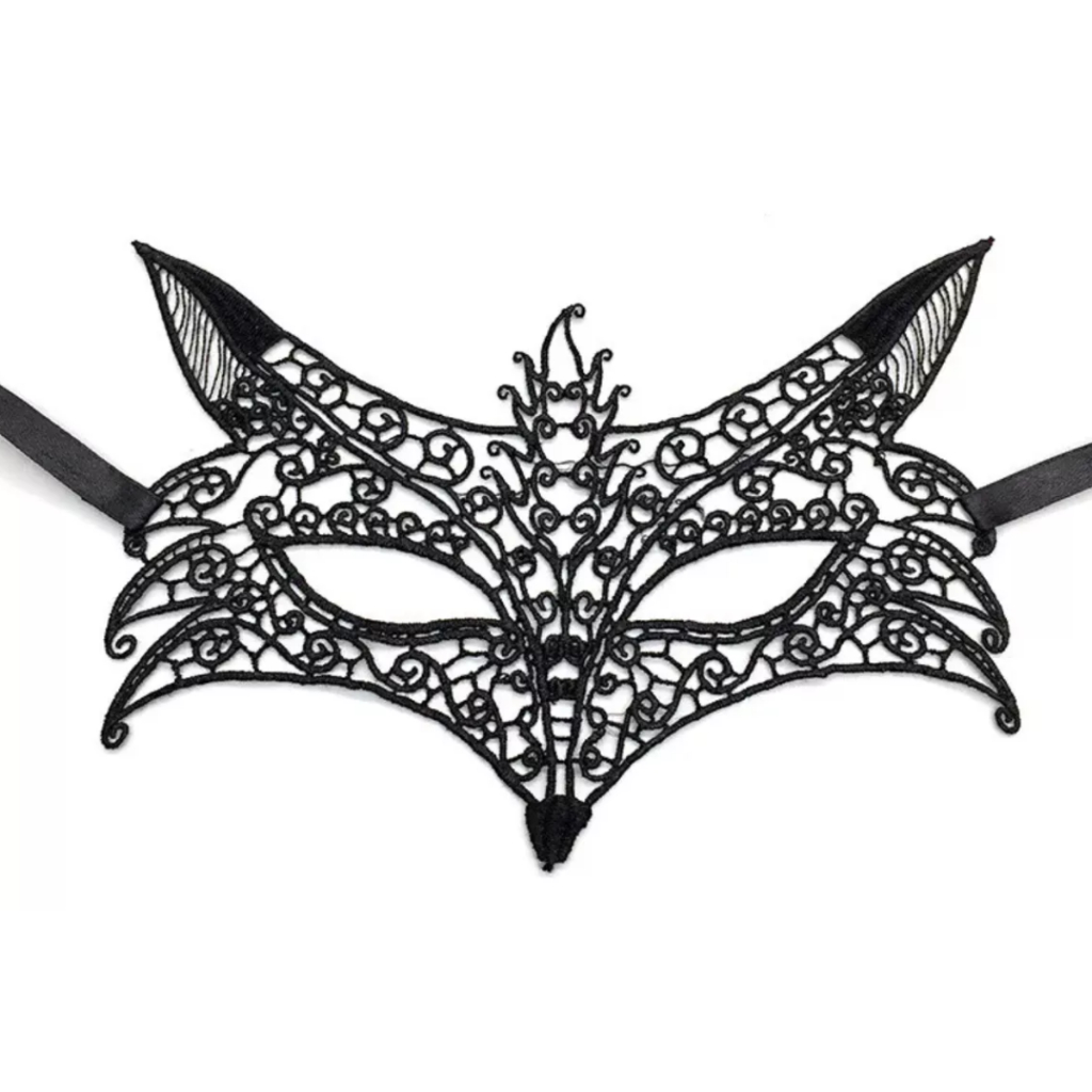 mascara de renda sexy preta para olhos raposa