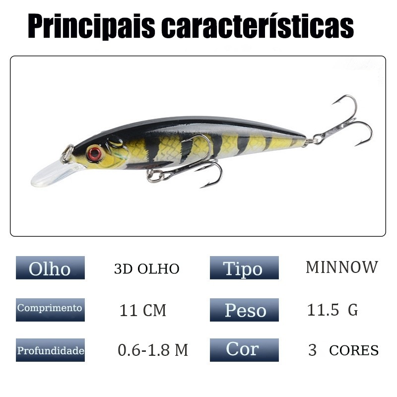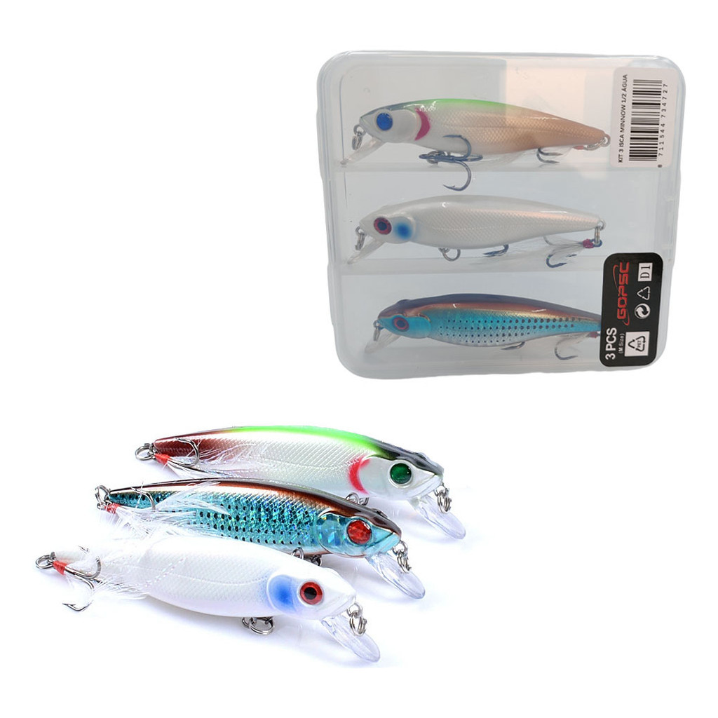 Kit 3 Iscas Artificiais Minnow Meia Água Tucunaré Robalo