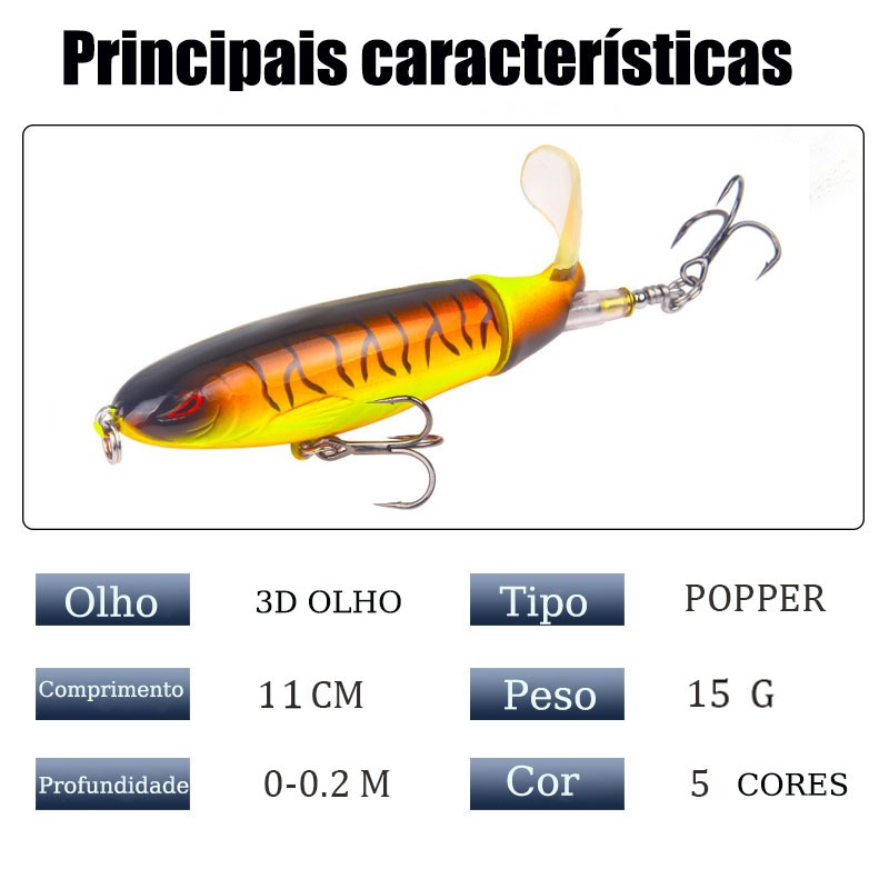 1 Uni Isca Artificial Whopper Plopper Superficie Tucunare Dourado