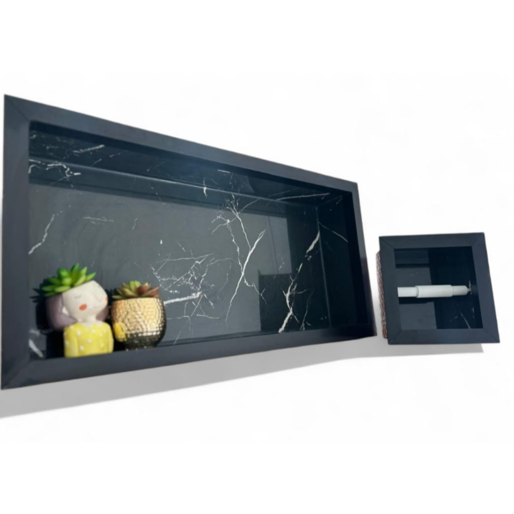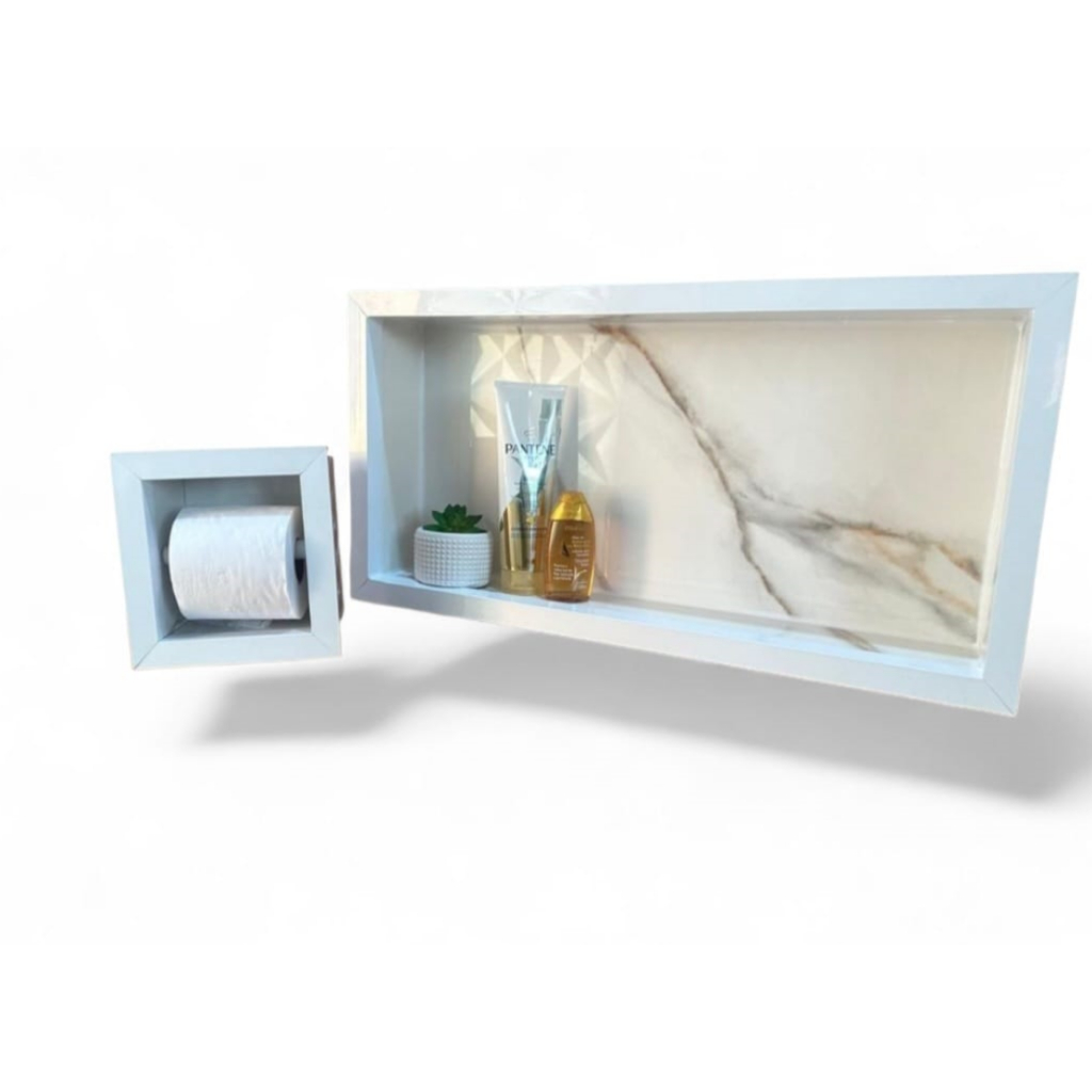 KIT NICHO + PORTA PAPEL HIGIENICO EM PORCELATO PARA BANHEIRO ENVIO FULL