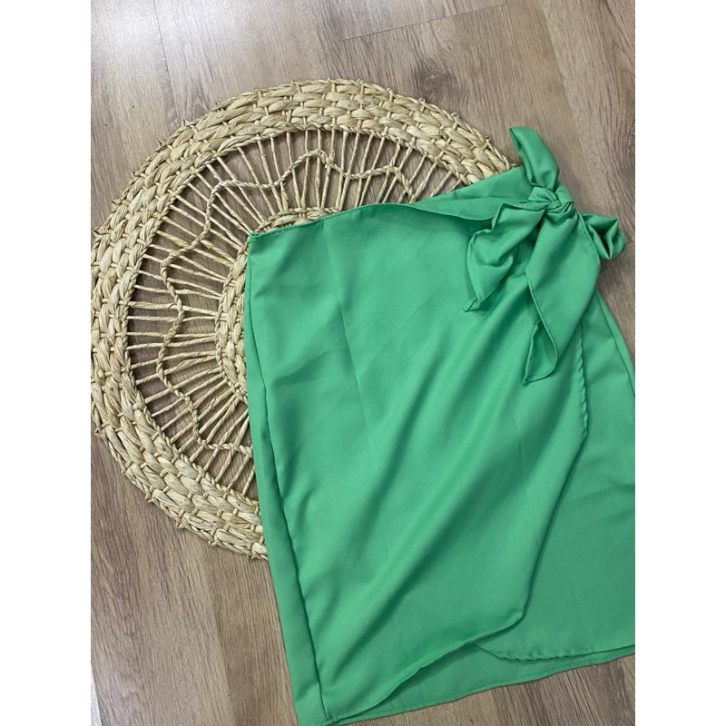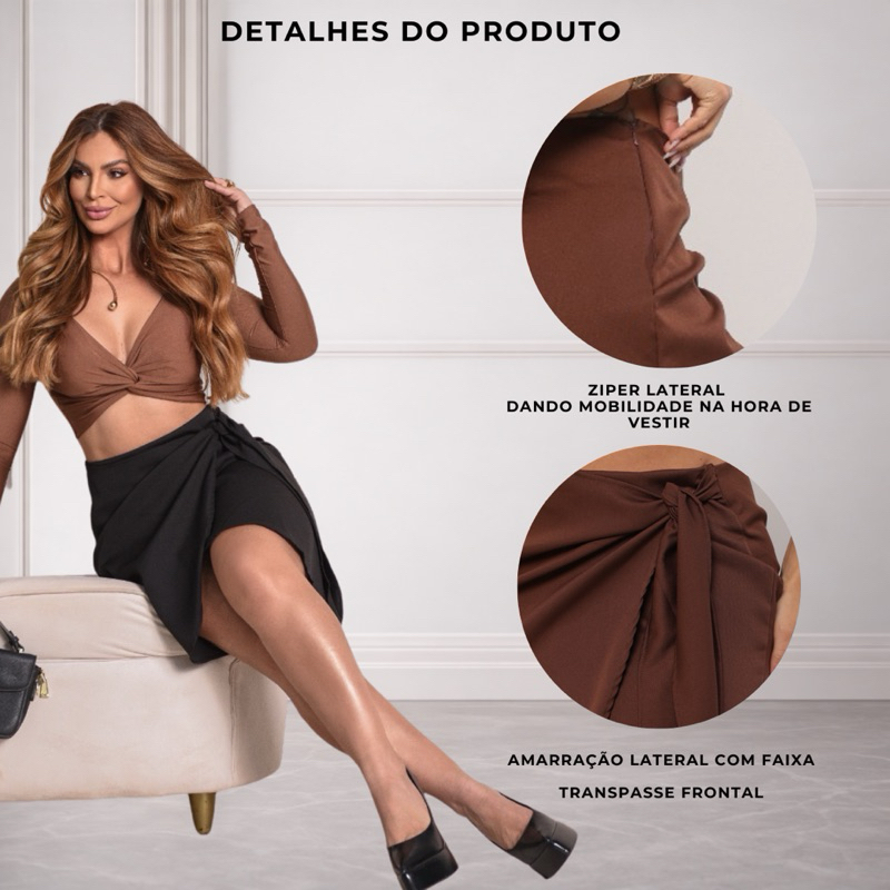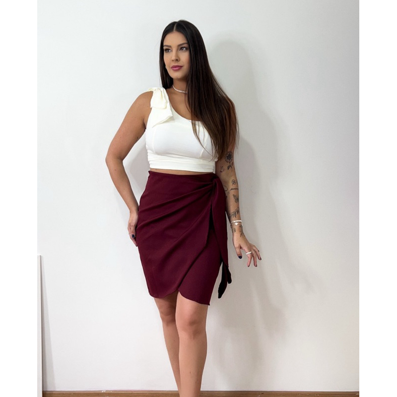 Saia envelope feminina transpassada de alfaiataria com amaraçao do lado