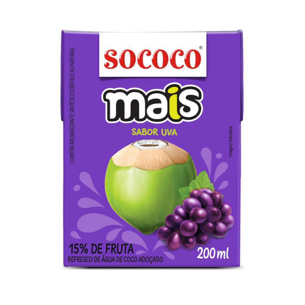 Água de Coco Mais Uva Sococo 200ml - 4 Unidades