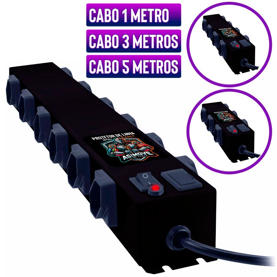 Filtro Linha de Metal C/ 12, 8 e 6 Tomadas Cabo 5mt 3mt 1mt Regua Tomada Espaçada