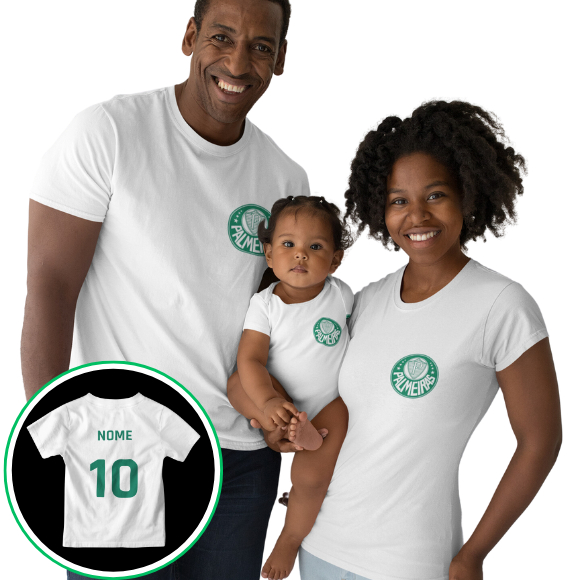Kit Família Palmeiras Personalizado com Nome: Camisetas e Body Bebê