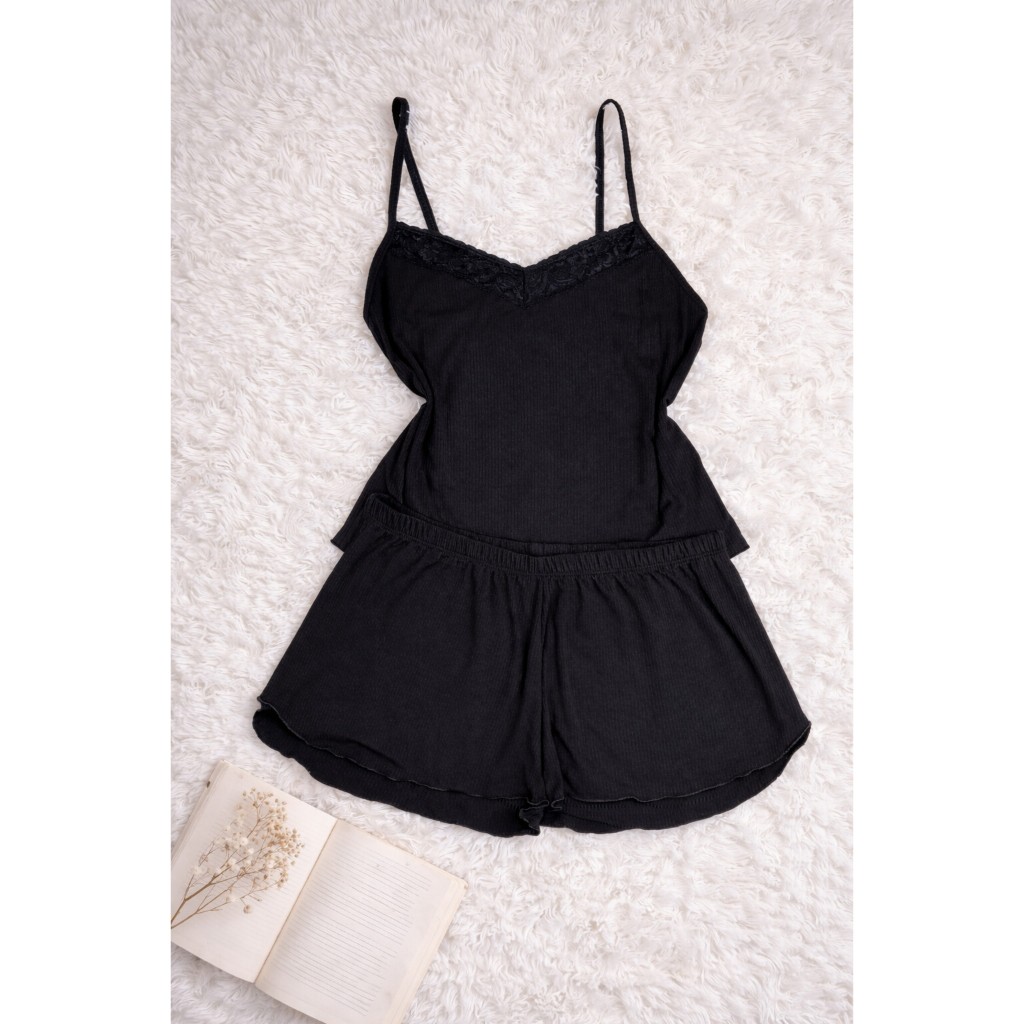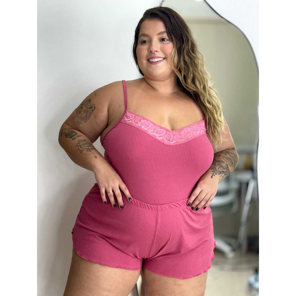 Pijama Short Doll Baby Doll Plus Size Liso Canelado C/ Renda