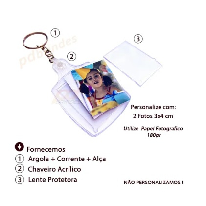 Chaveiro Para Foto 3x4 Acrílico Retangular Variações 10 a 40 Unidades
