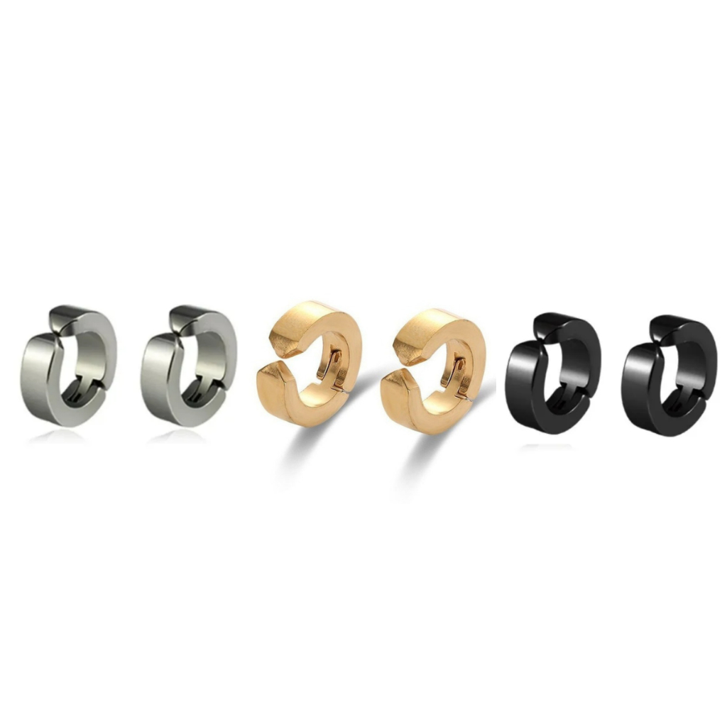 Brinco Pressão Aço Inox Kit 3 Pares Antialérgico Unissex Brinco De Pressão Masculino