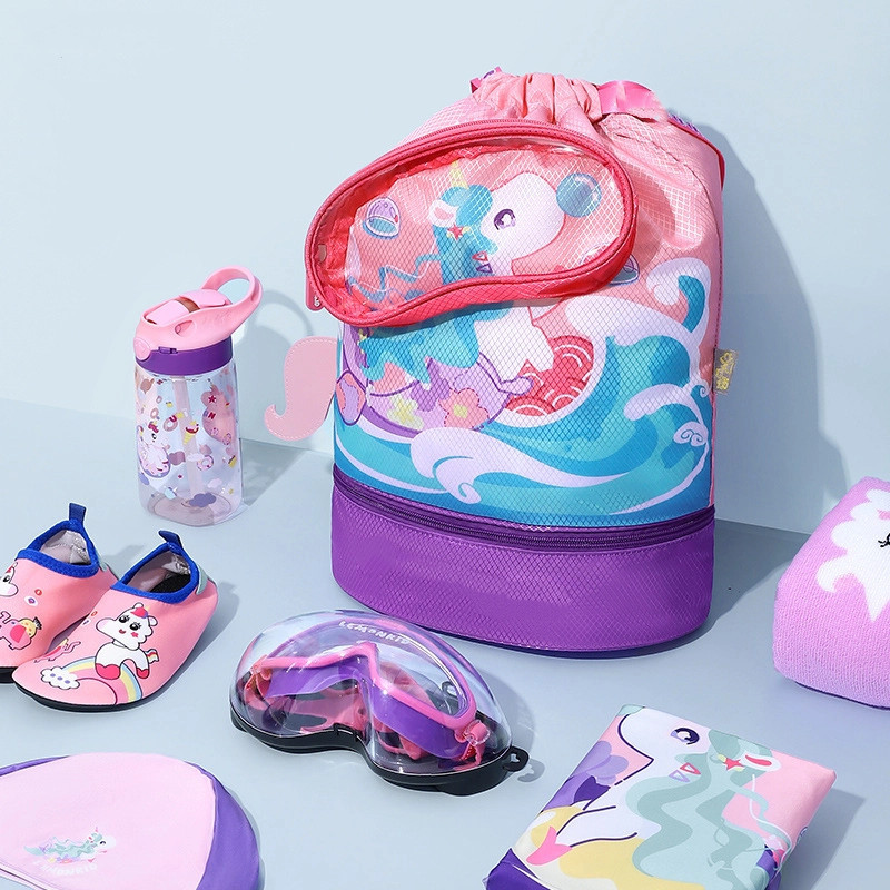Mochila Natação Infantil Viagem Impermeável Compartimento Separado Seco Molhado Black Banana