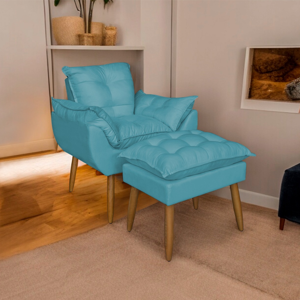 Kit Amamentação Poltrona e Puff Opalas Suede Pé Palito