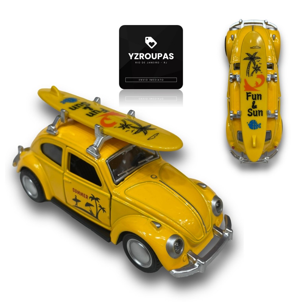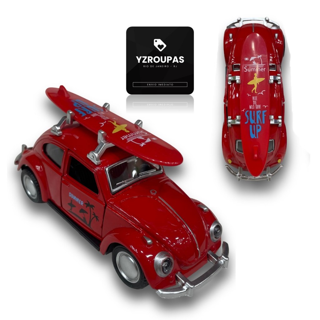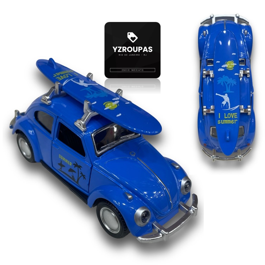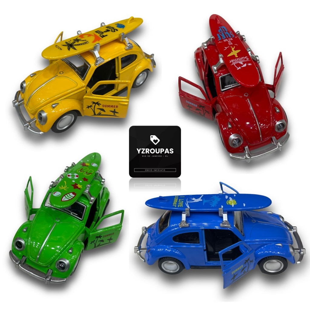 Miniatura Fusca Praiano Fricção Surf Retro Abre Portas Metal Colecionável Brinquedo Vintage