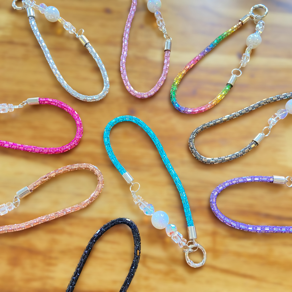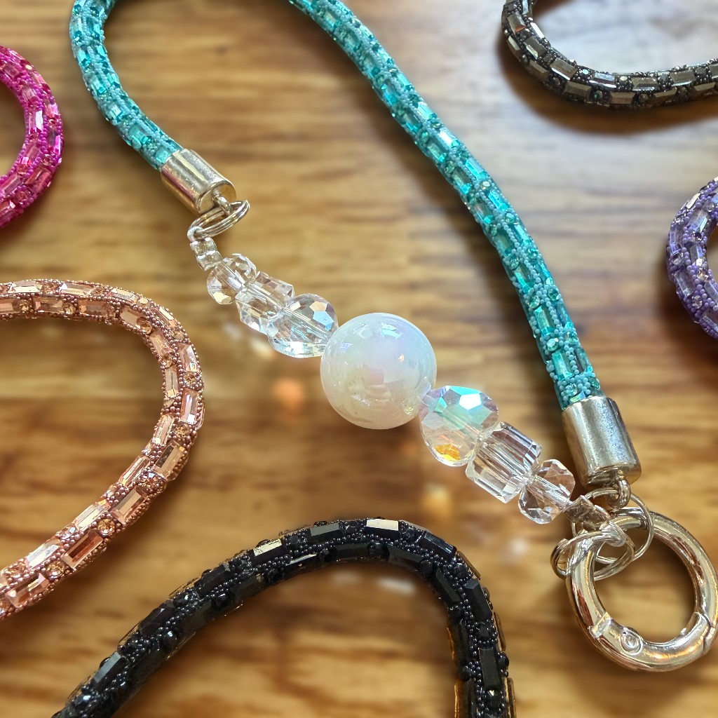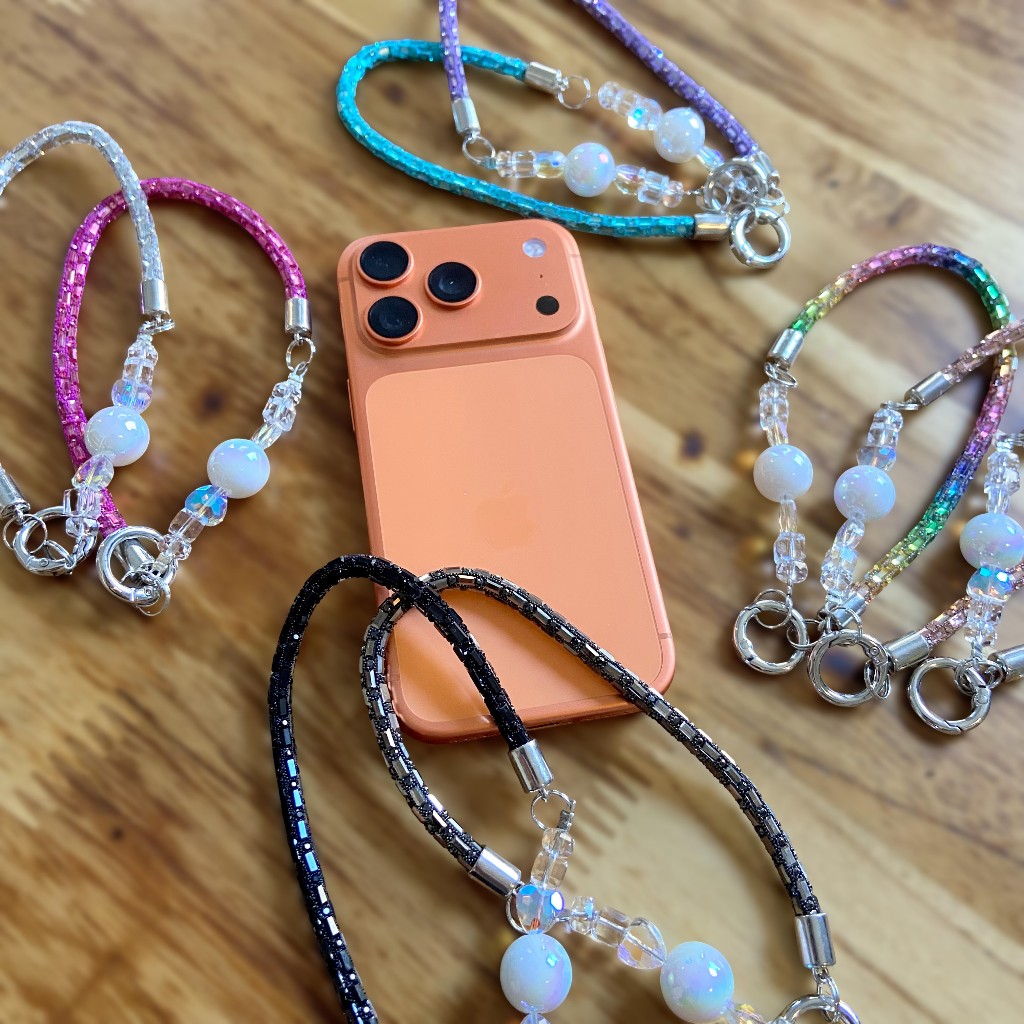 ✨ Pulseira Fashion com Strass – Cordão de Mão com Pedras - Luxo e Moda para Celular Anti Queda