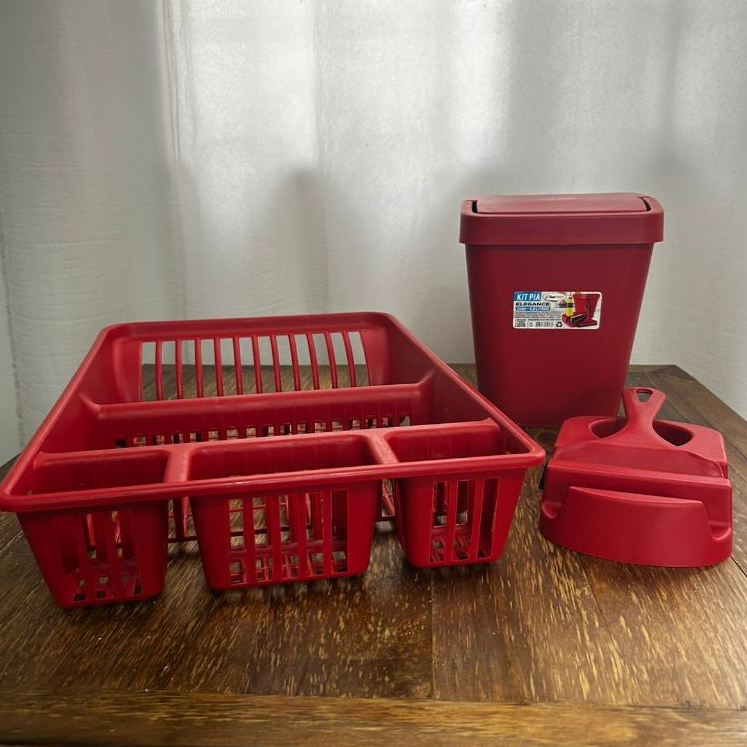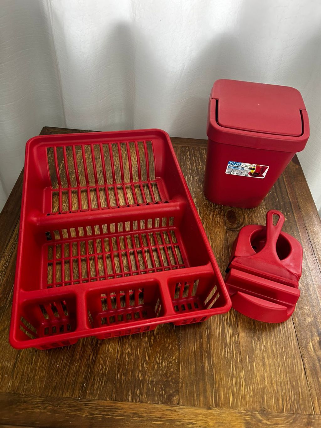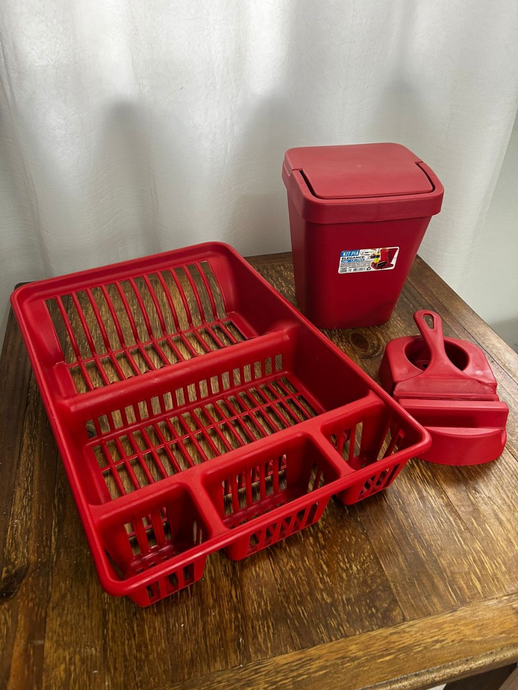 Escorredor de Louça + Kit Pia3 peças Vermelho - Organizador Completo para Cozinha