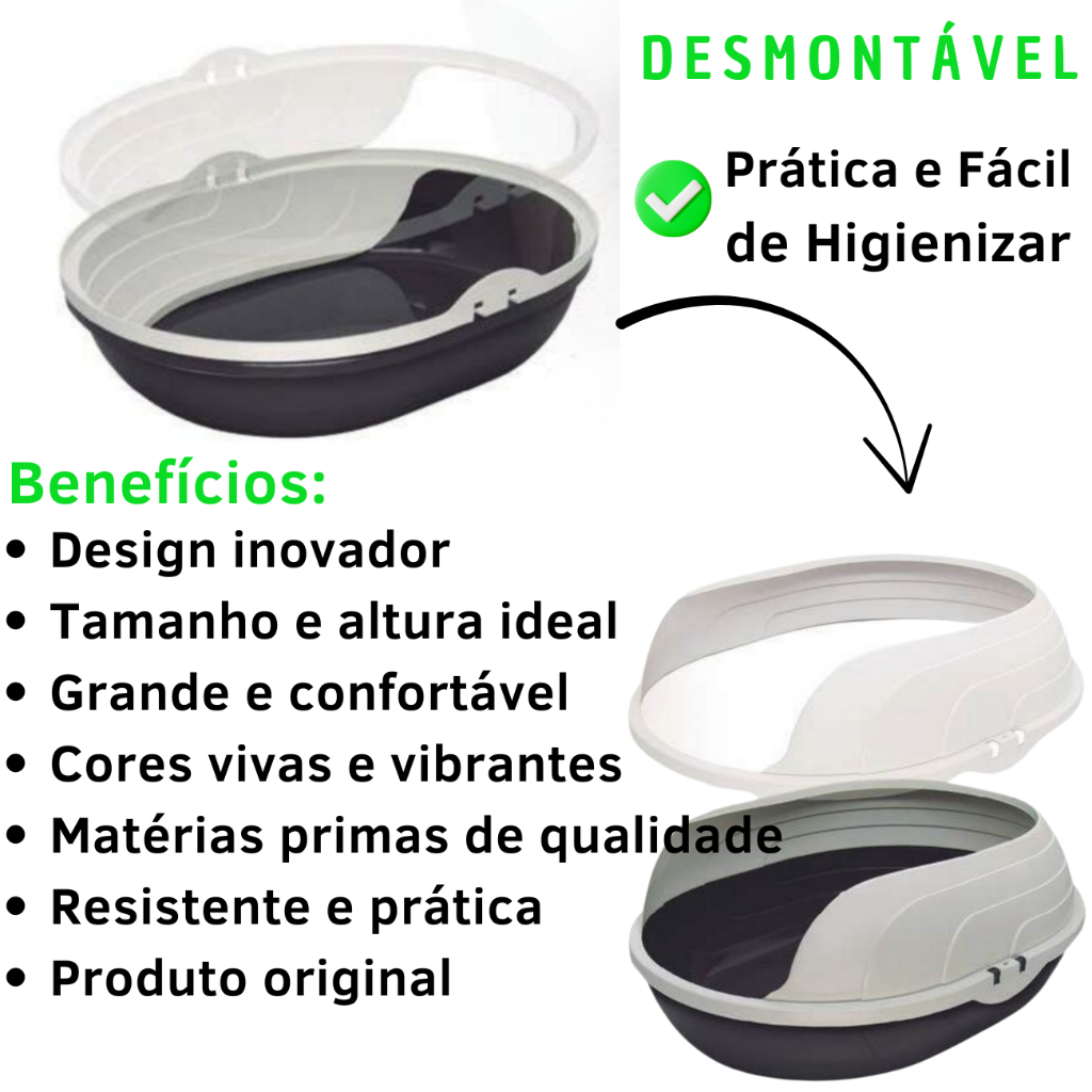 Caixa de Areia Sanitária Bandeja Higiênica Furba Prime Pet Com arco para Gatos Resistente Qualidade