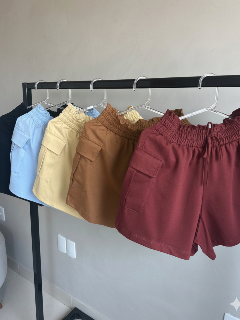 Bermuda feminina Cargo 100% algodão elegante short fresquinho look fim de ano vermelho verde