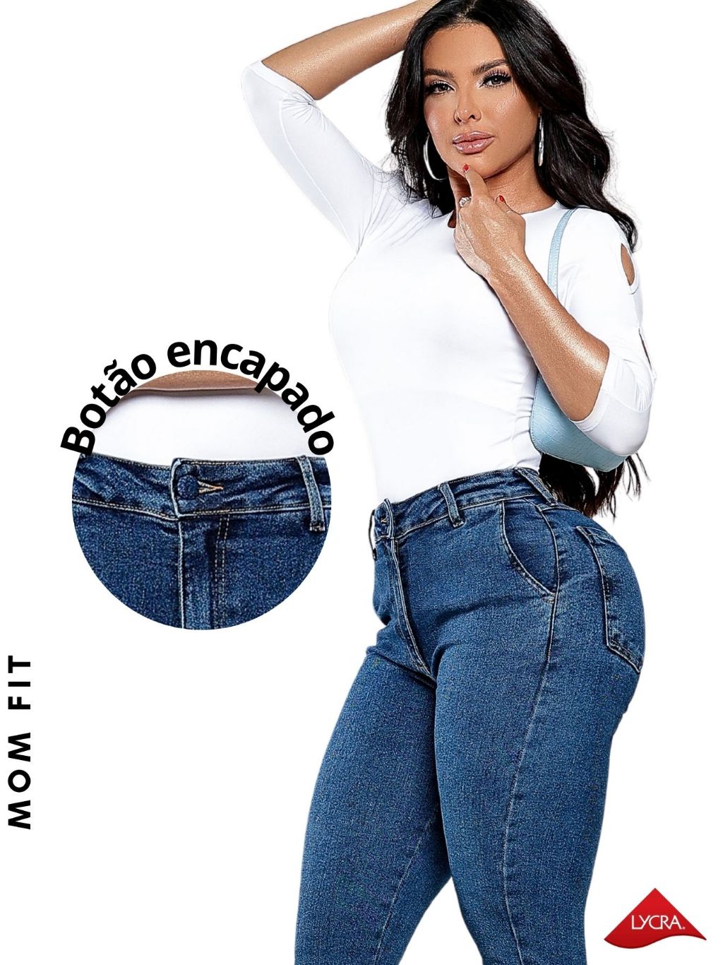 Calça Mom Fit Feminina Com Cintura Alta Lycra Modeladora
