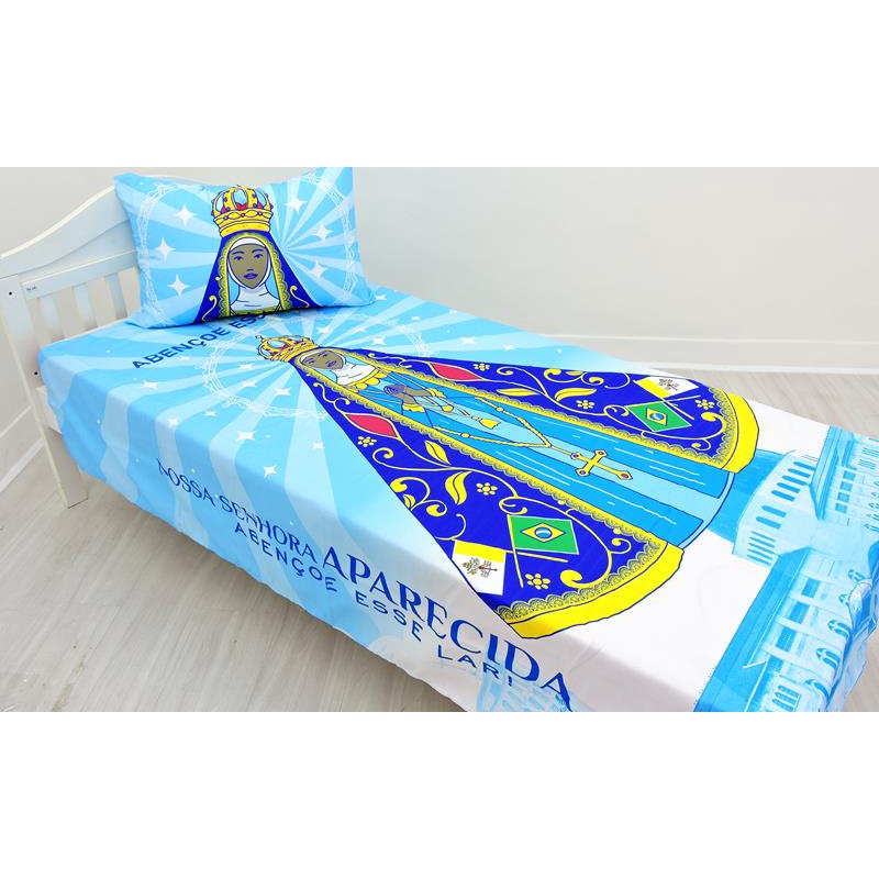 Jogo De Lençol E Fronha Nossa Senhora Kit 2pçs, Cobreleito