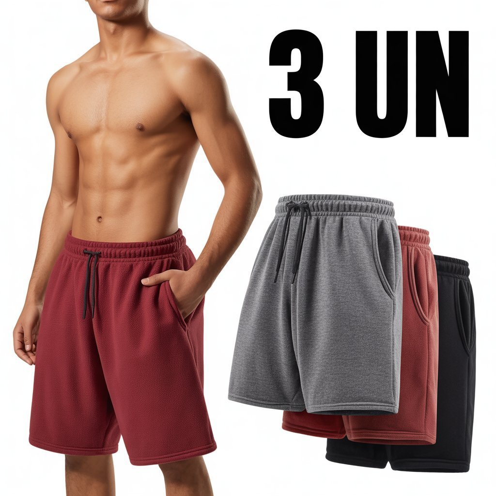 Kit 3 Bermuda Moletom Masculino Academia Treino Lisa com 2 Bolso Cores Sortidas - Promoção !