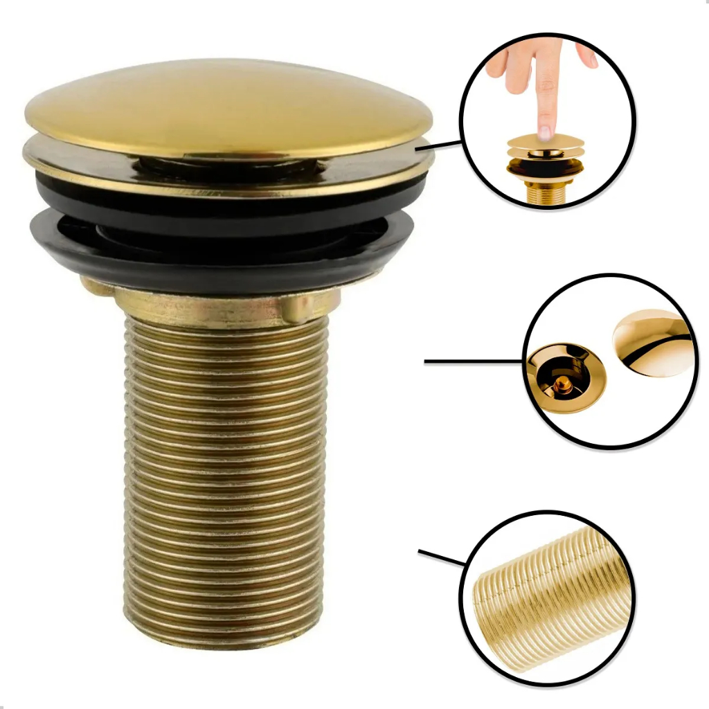 Valvula Clic De Inox Gold, Valvula Clic 100 % Inox Dourada, Ralinho Pia, Valvula Cuba De Apoio