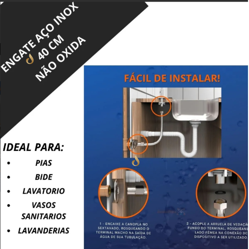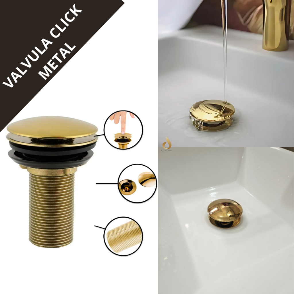 Sifão Pia Tanque Universal Preto 70cm + Válvula Click Inteligente 7/8 Dourado Metal + Engate Inox 40cm