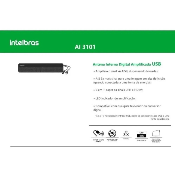 Antena Interna Tv Digital Amplificada Hdtv Intelbras Ai 3101