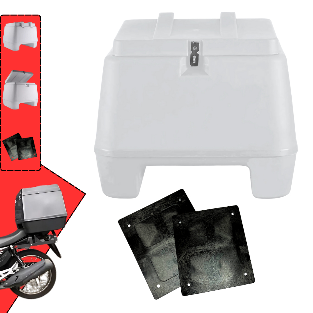 Baú Bauleto 80 Litros Titan Bros Cg Biz Fan Com Placa de Fixação Pro Tork Original Para Entrega Plástico Injetado Branco