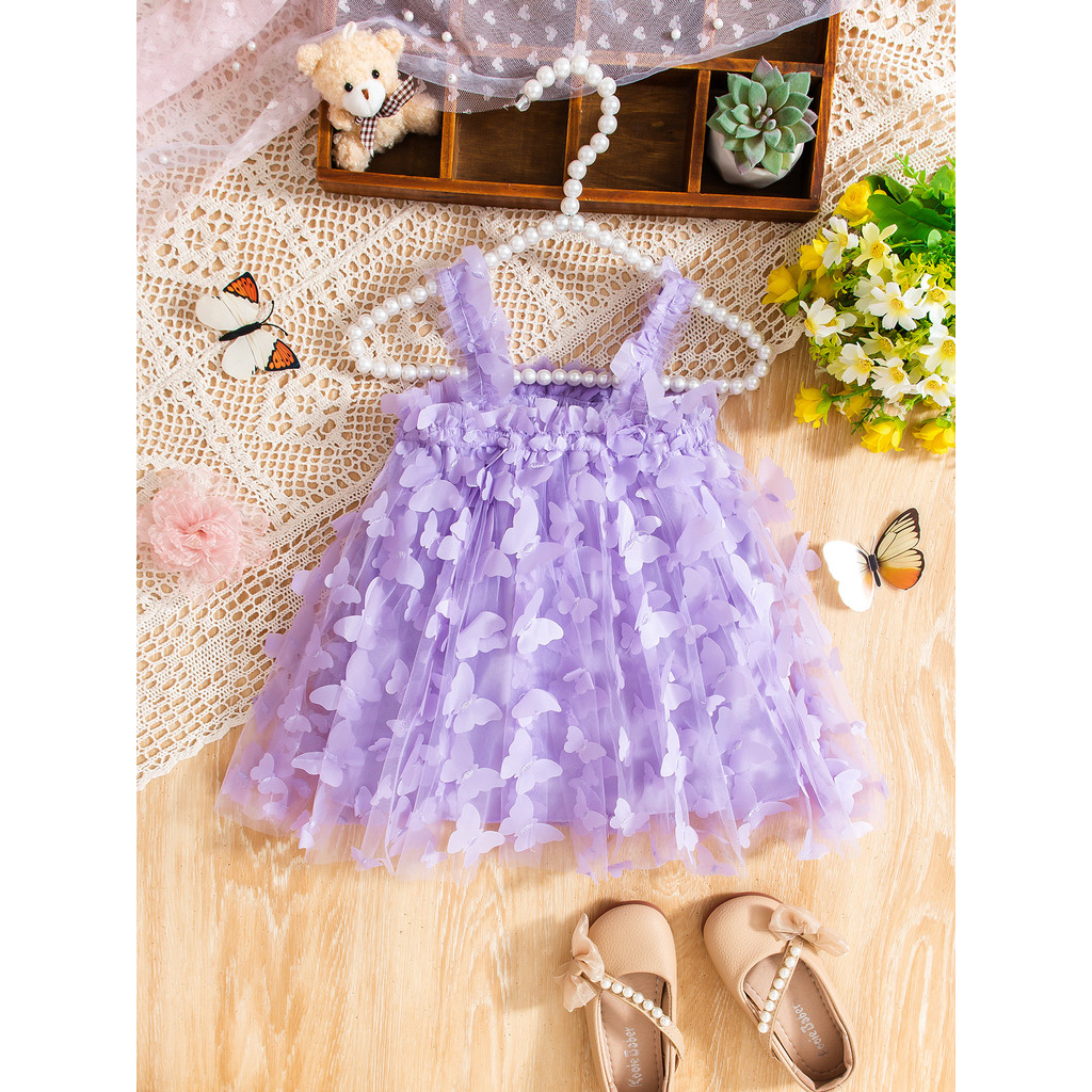 Vestido De Menina Lindo Gaze De Borboleta Presente De Aniversário Infantil Disponível Em Várias Cores