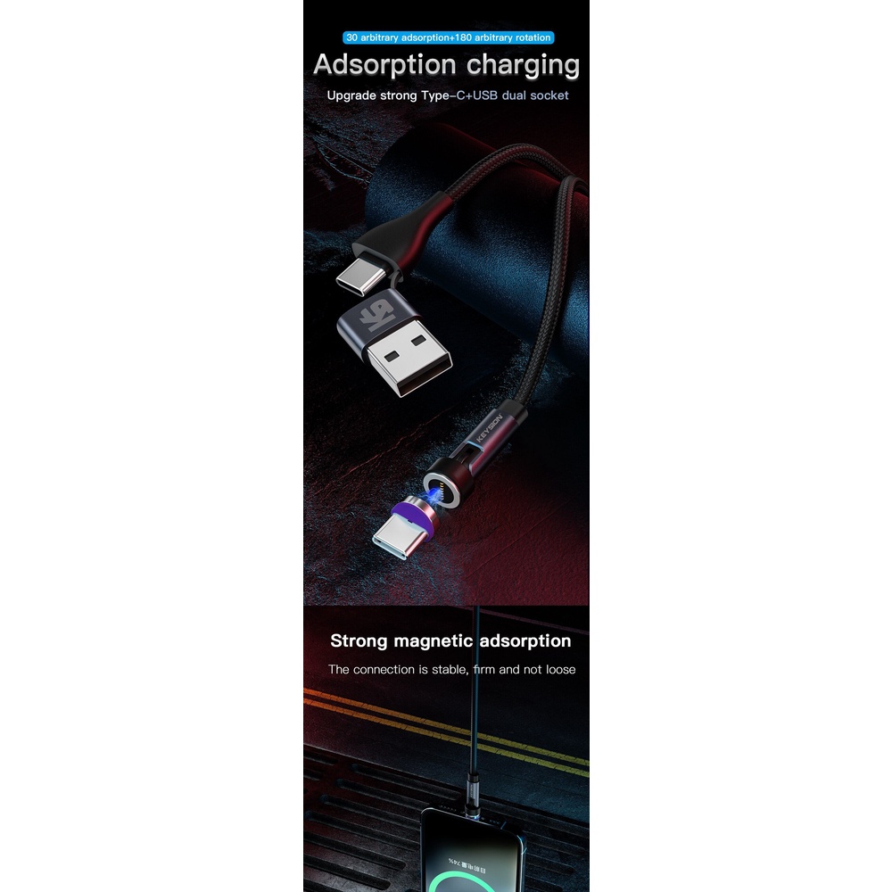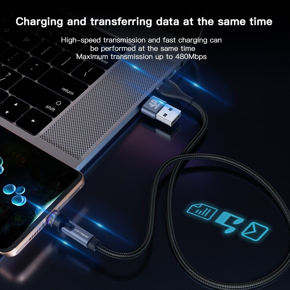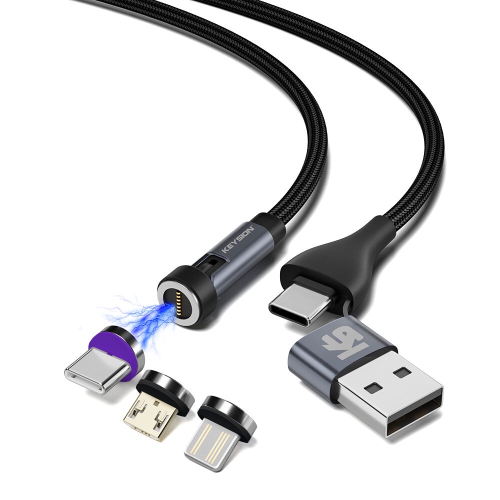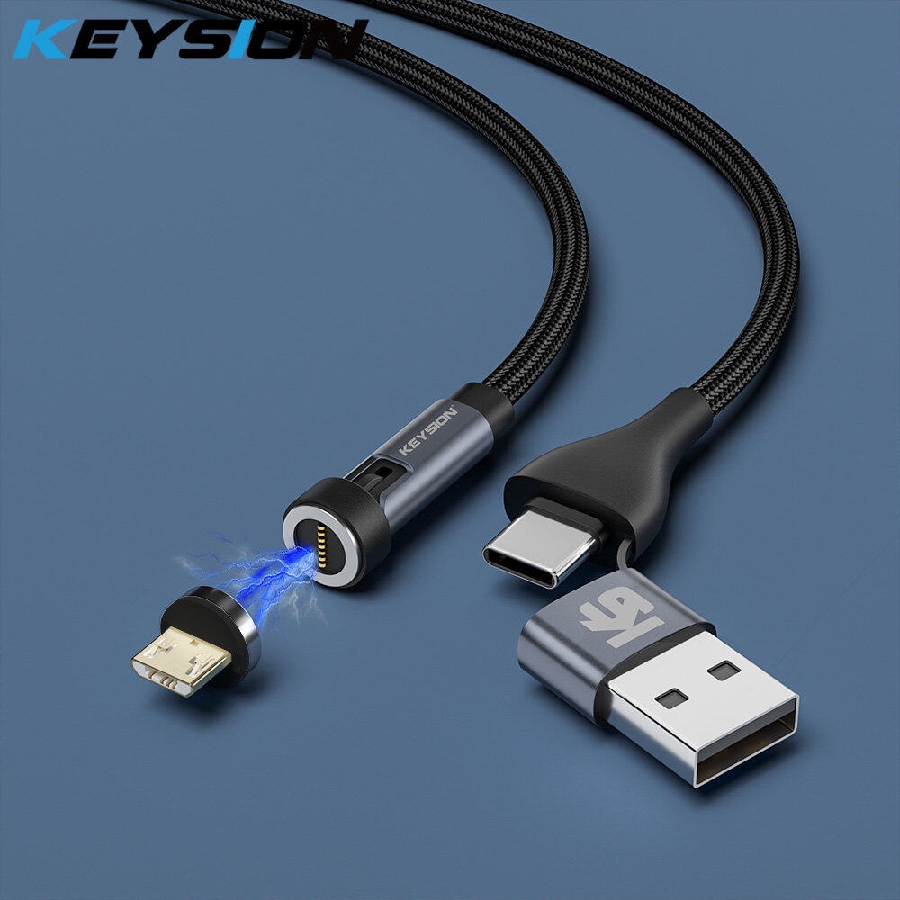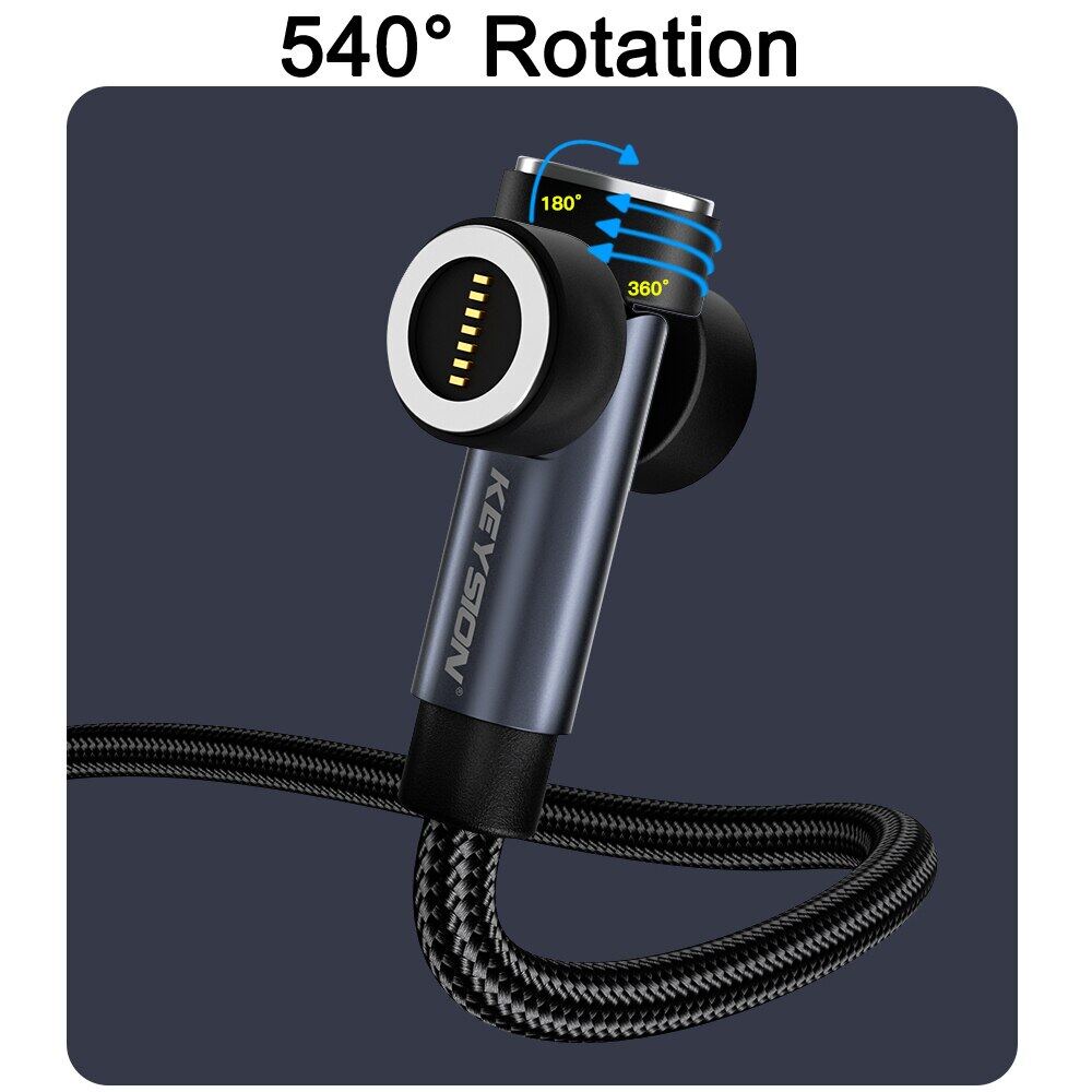 KEYSION Cabo Magnético 540 Graus Rotação 5A Carregamento Rápido De Fio Para Celular Micro USB Tipo C-A Android , tablets