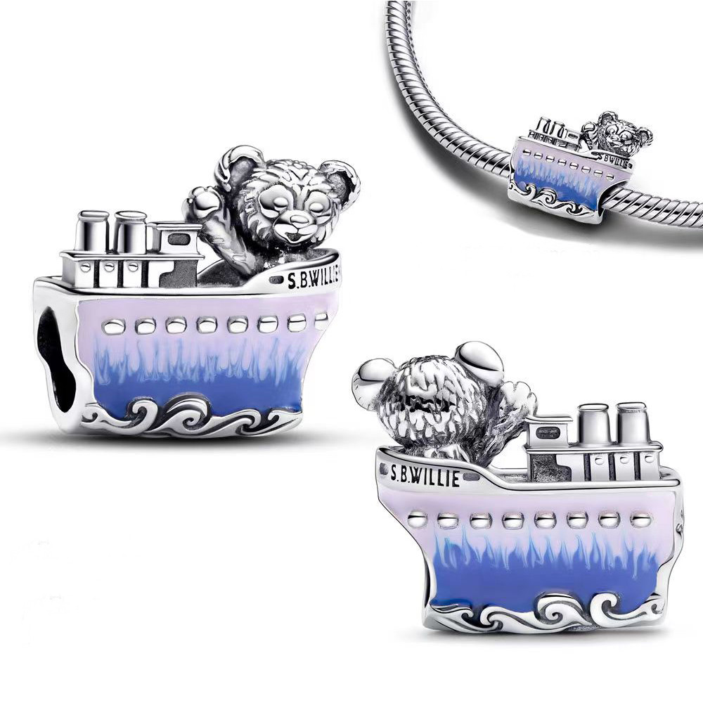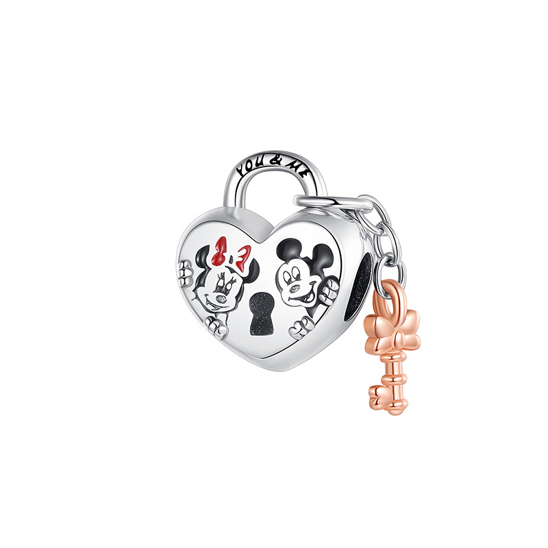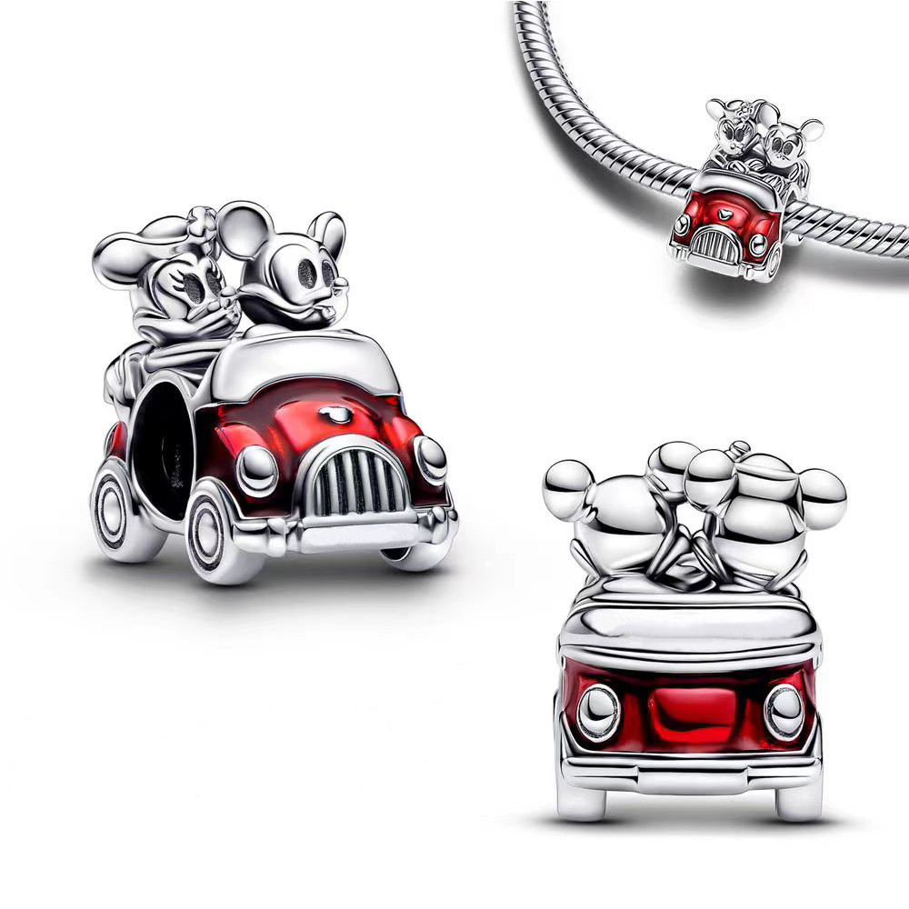 925 prata esterlina Mickey viagem com Minnie avião charme pingente 925 corrente grânulo jóias Original pingente pulseira