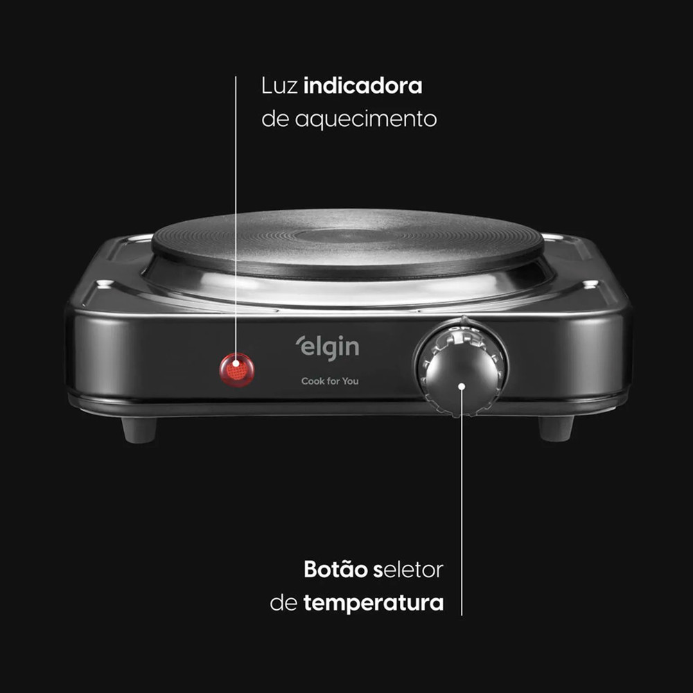 Fogão Elétrico Portátil 1 Boca Single Cook 1000W Preto 220V Elgin