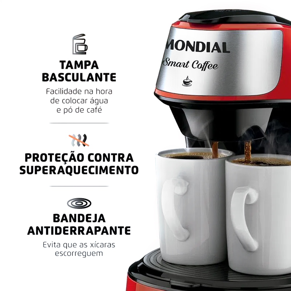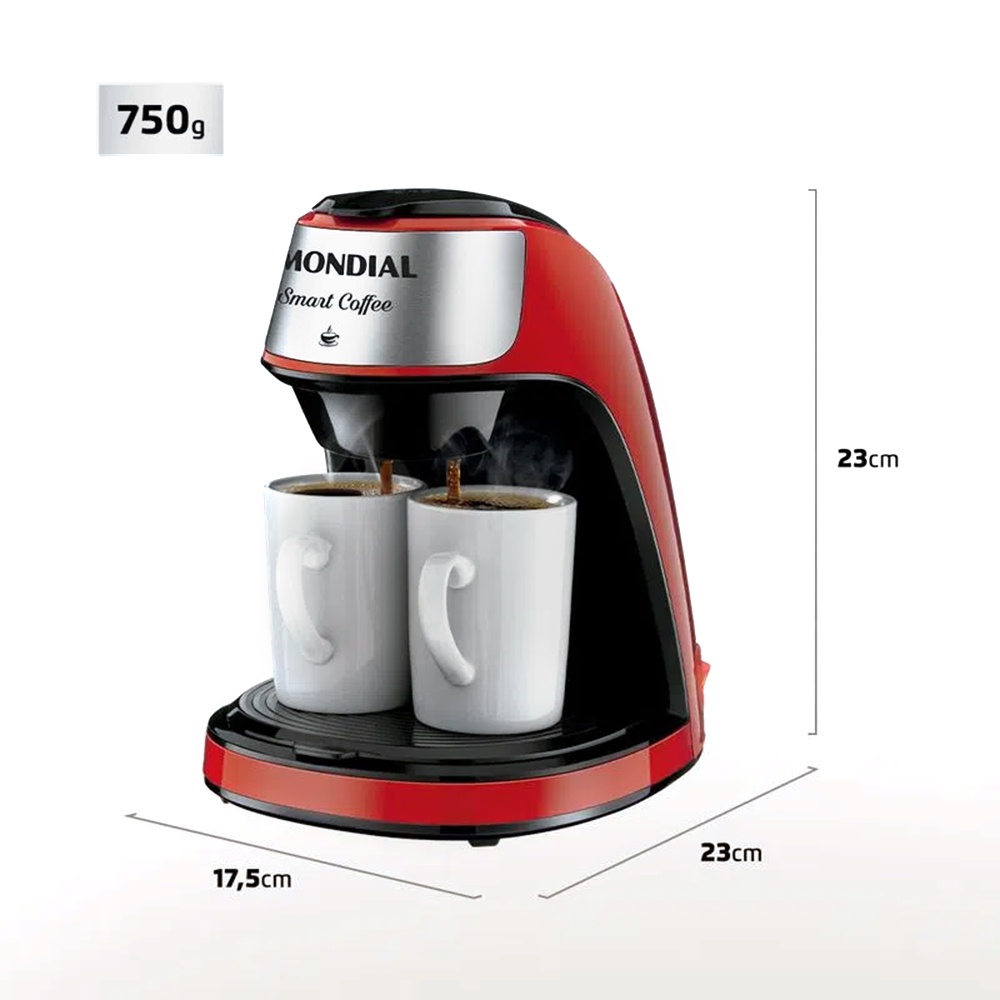 Cafeteira Elétrica Prática, 2 Xícaras, Mondial, Smart Coffee C-42-2X-RI, 220V, 500W Vermelho/Inox