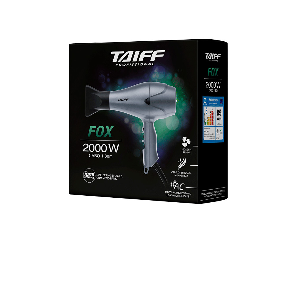 Secador de Cabelo Profissional Taiff Fox Íon Prata -110V