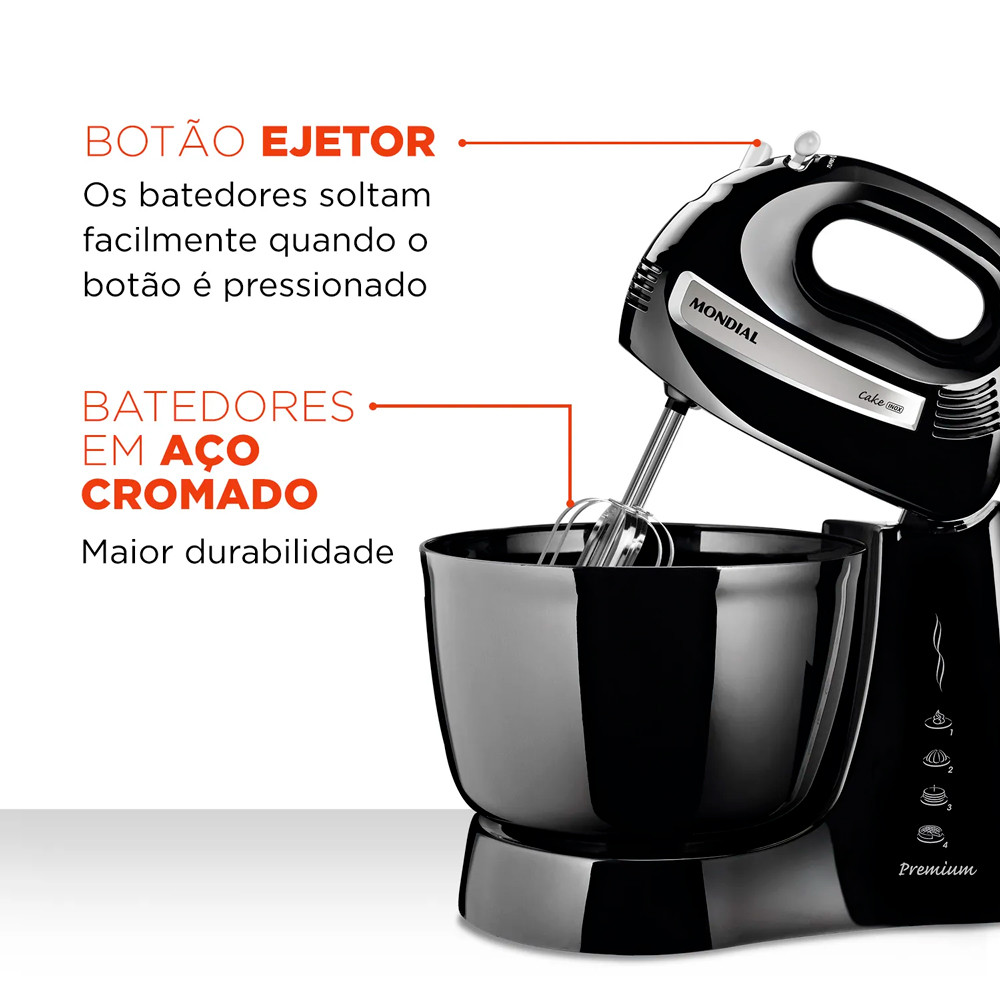 Batedeira Cake Premium, Mondial, 4 Velocidades, 500W, 220V - B-50-B - PRETO