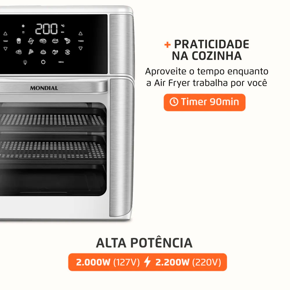Forno Elétrico Mondial Air Fryer Oven 12l 2000w Branco/inox Afon-12l-wi 127v