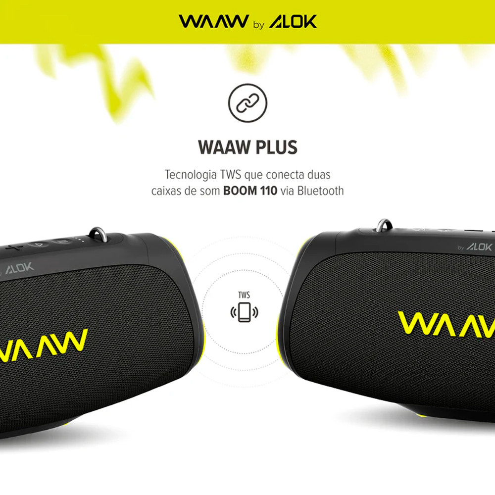 Caixa Bluetooth Waaw Boom 110 Portátil Potente e Á Prova D´água
