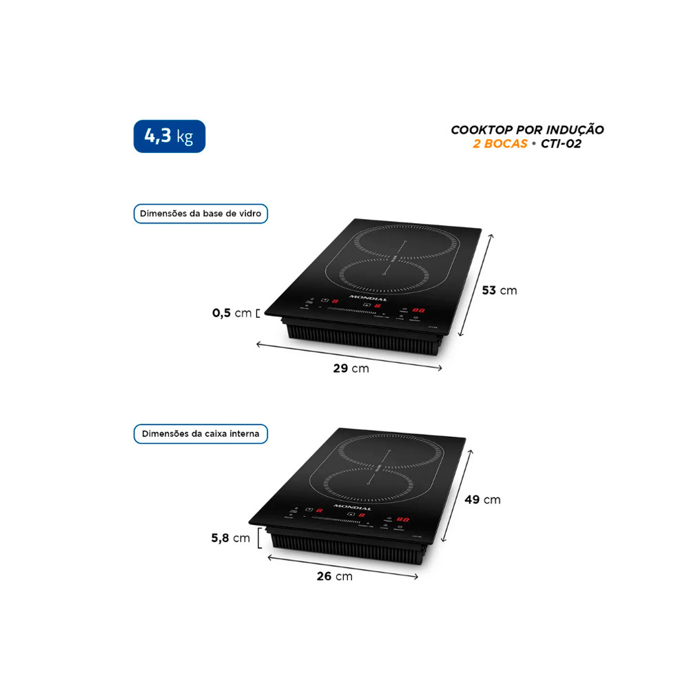 Cooktop Indução Mondial 2 Bocas 3500w Pt Cti-02 220v