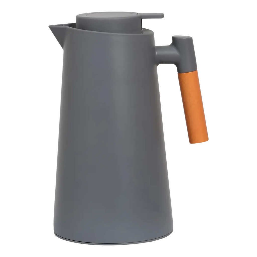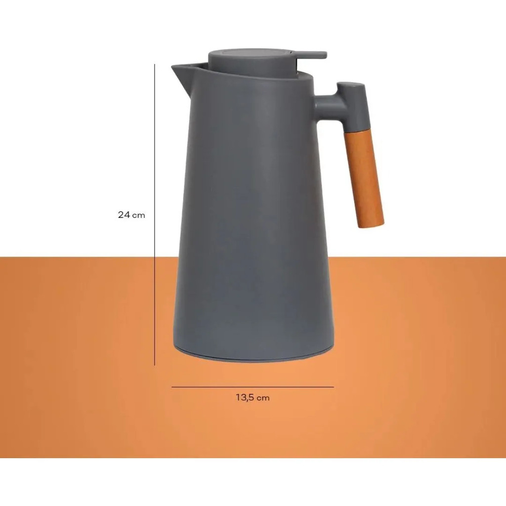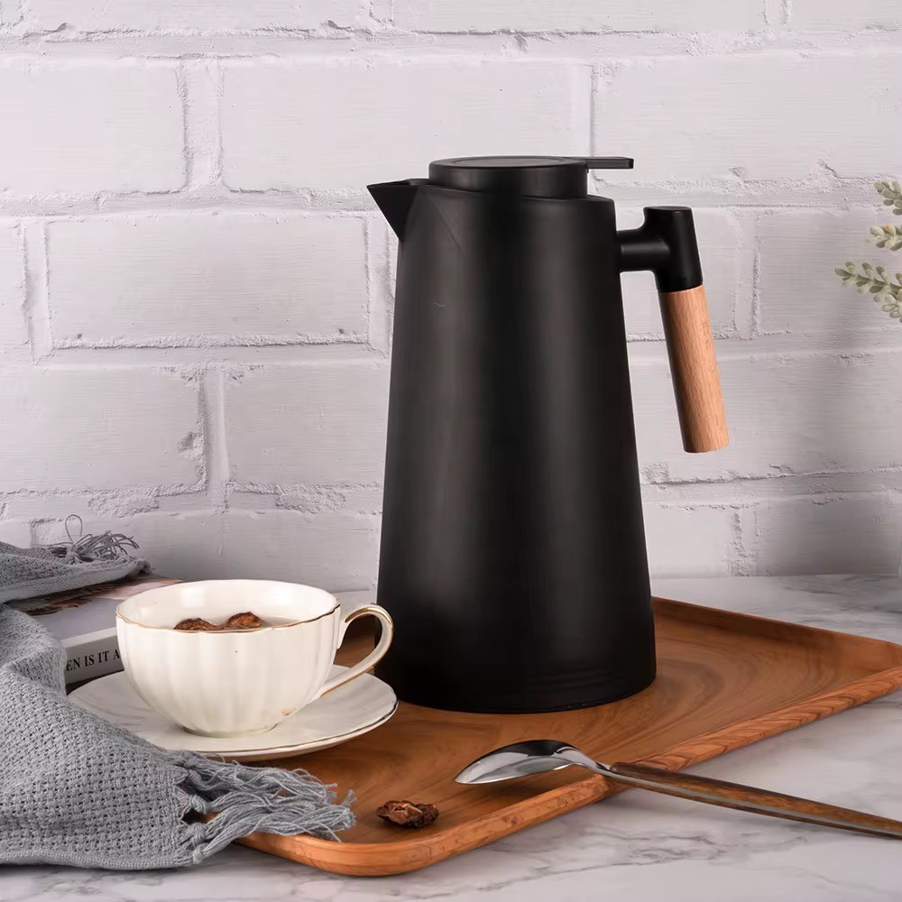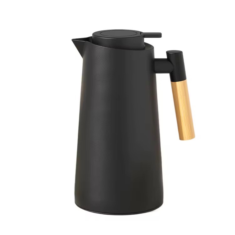 Garrafa Térmica de Café 1 Litro Preta Premium Cabo Madeira