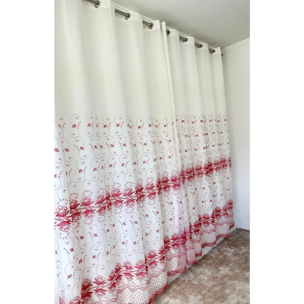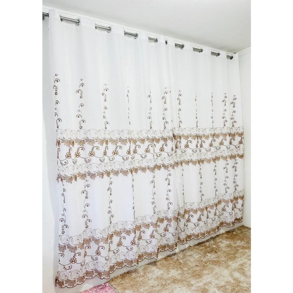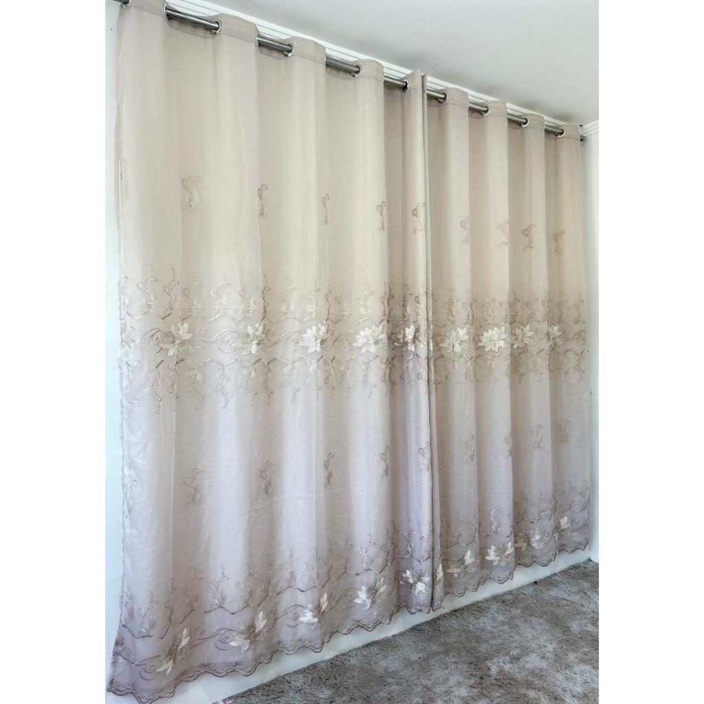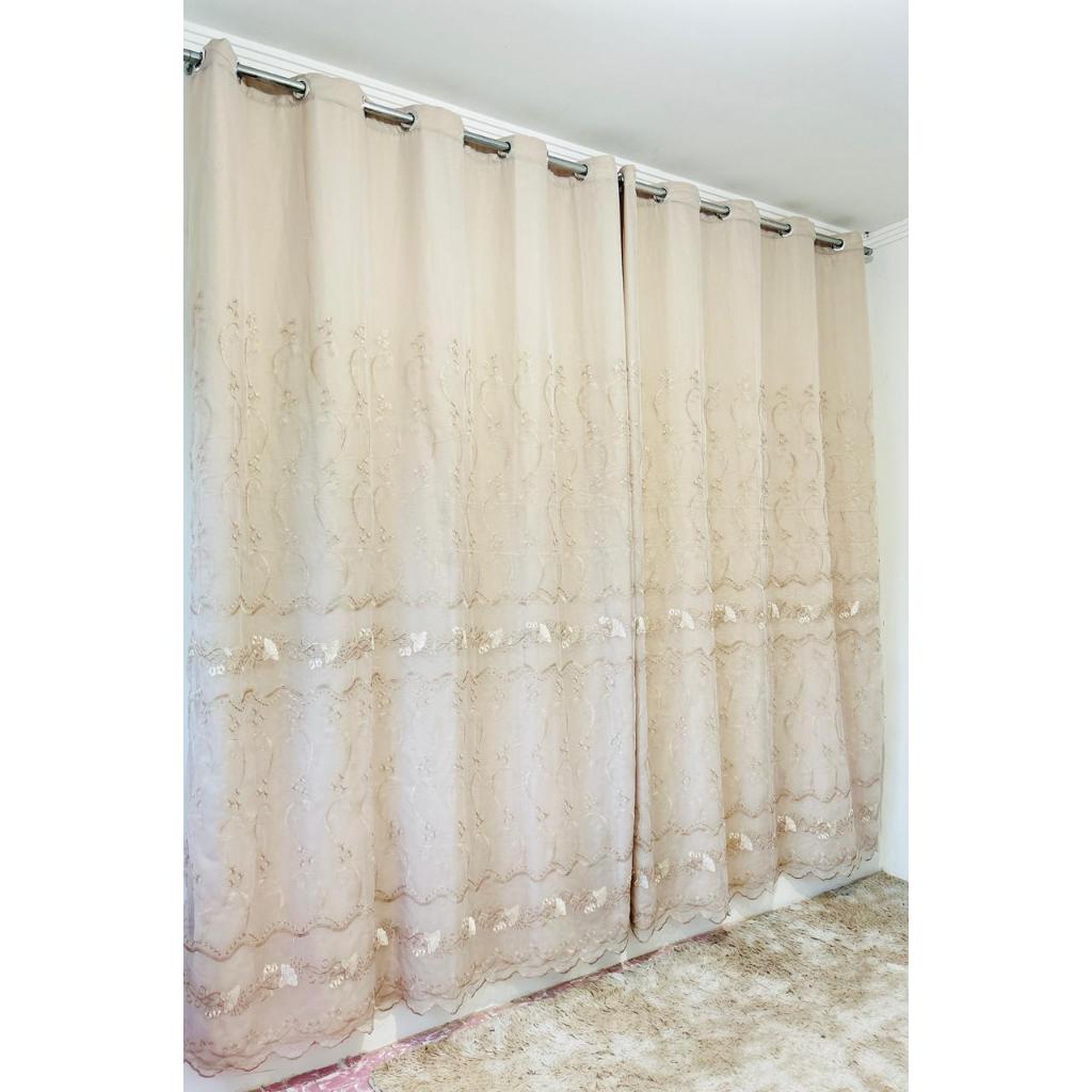 Cortina Voil Bordada 3,00 × 2,60 Com Forro de Microfibra Alta Qualidade