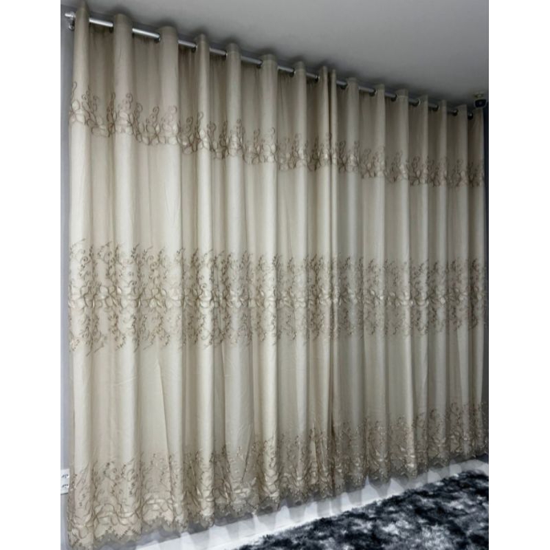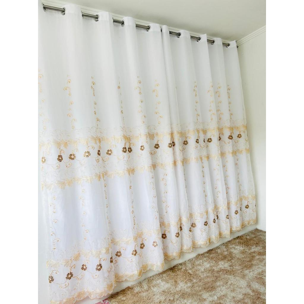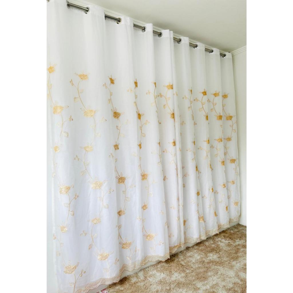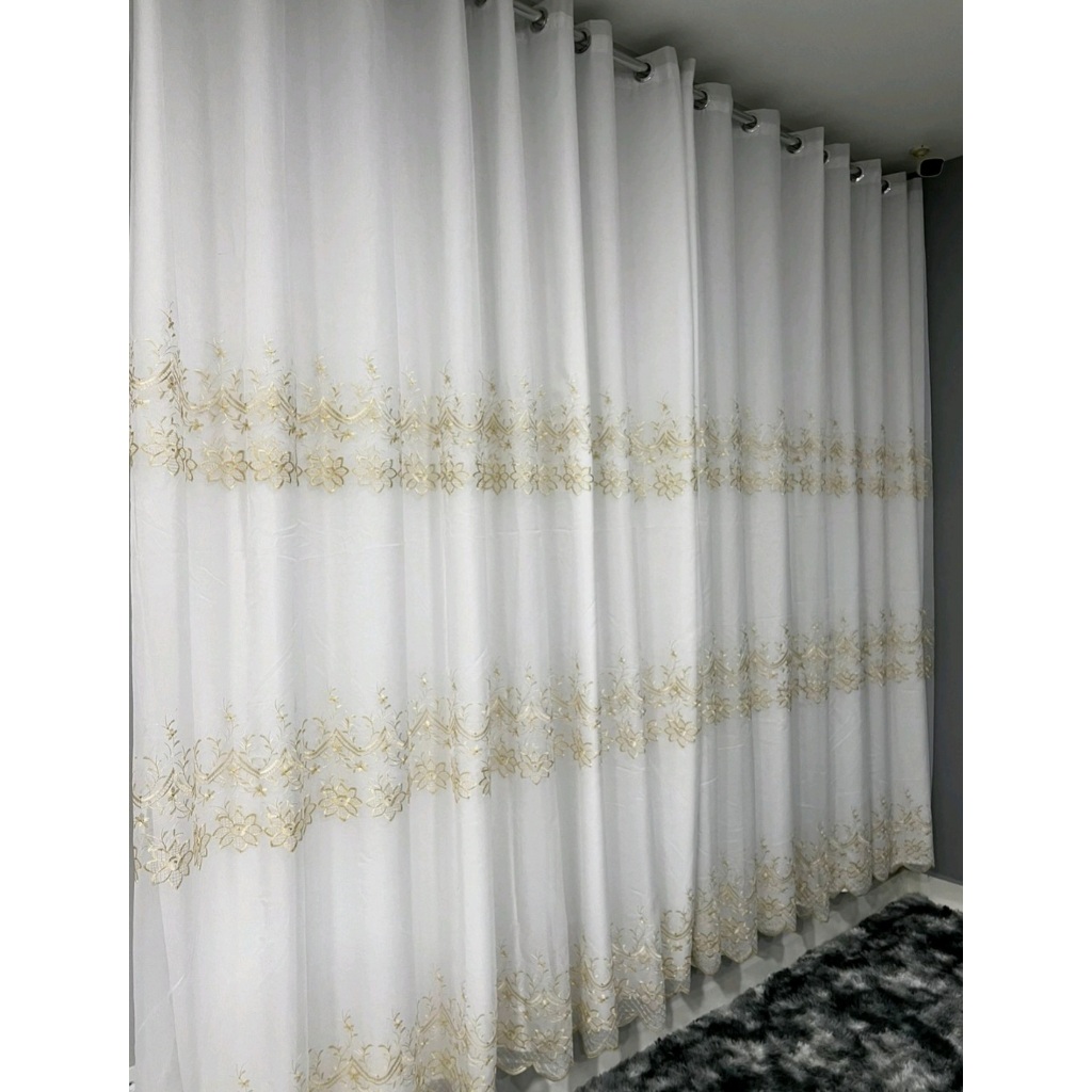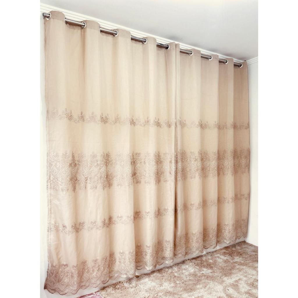 Cortina Voil Bordada 3,00 × 2,60 Com Forro de Microfibra Alta Qualidade