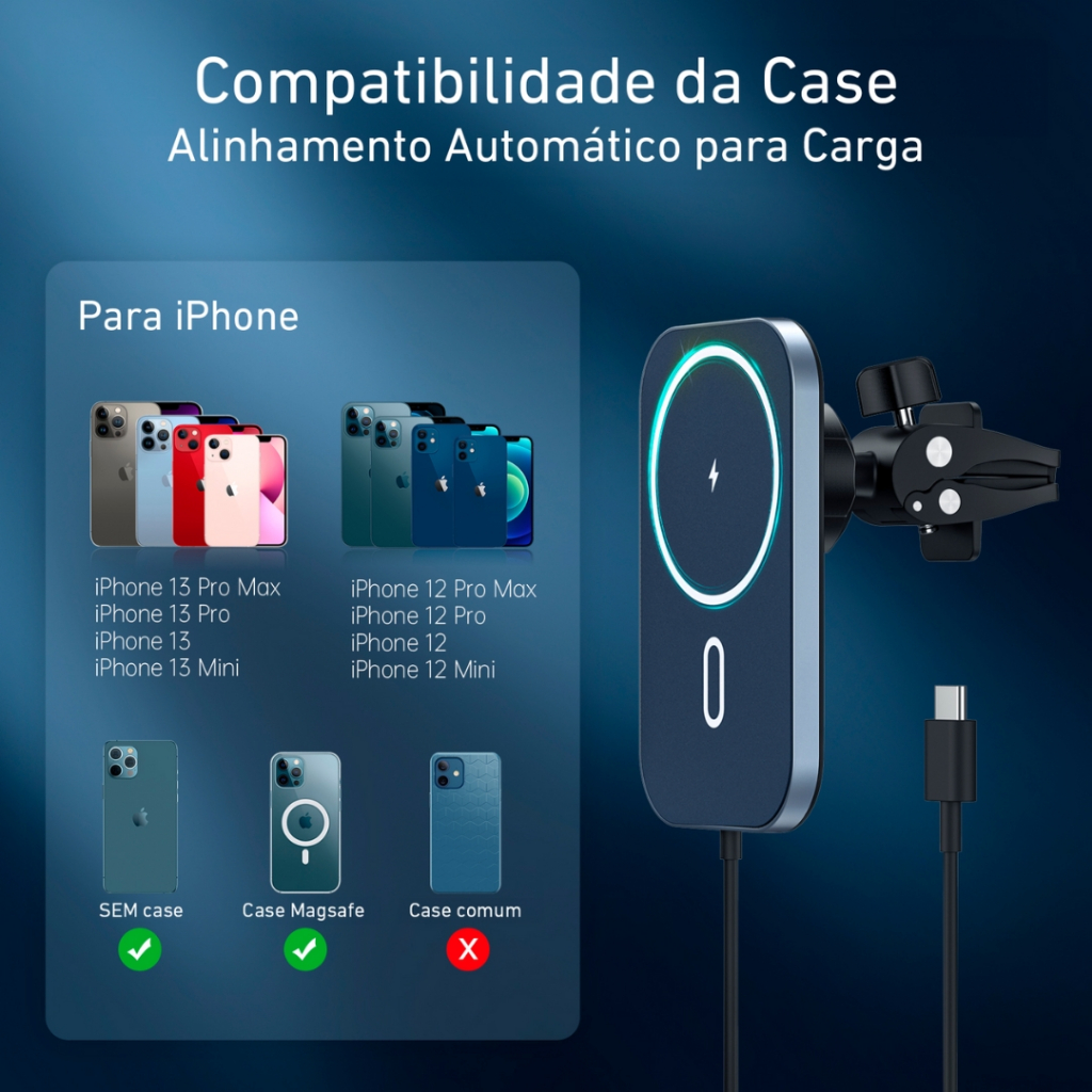 Carregador Indução E Suporte Veicular Dapon Magsafe iPhone