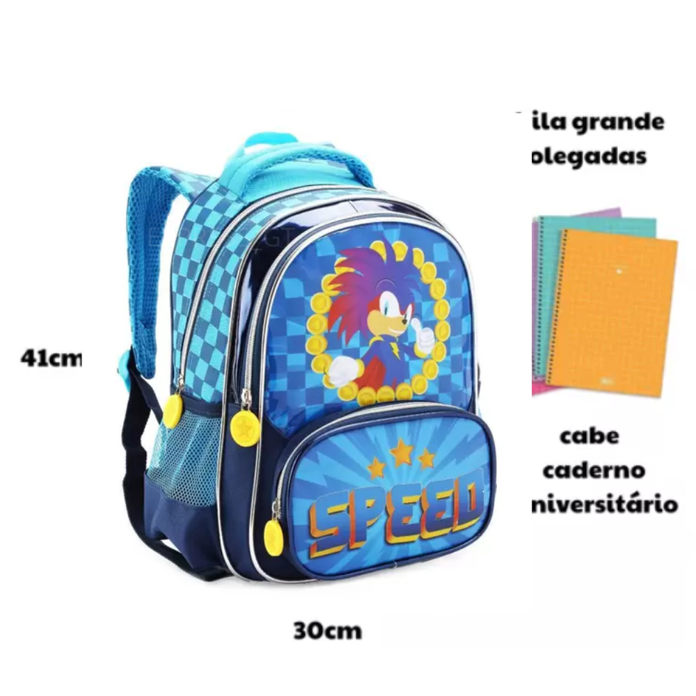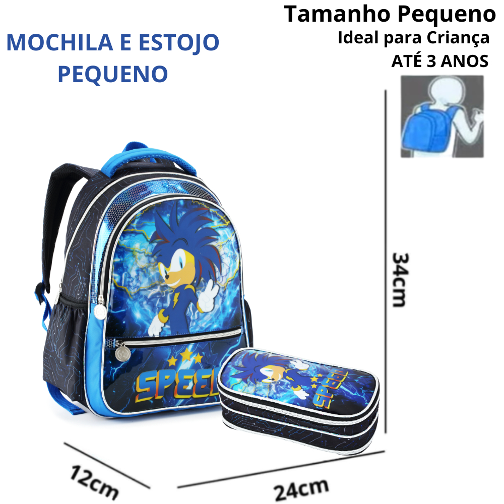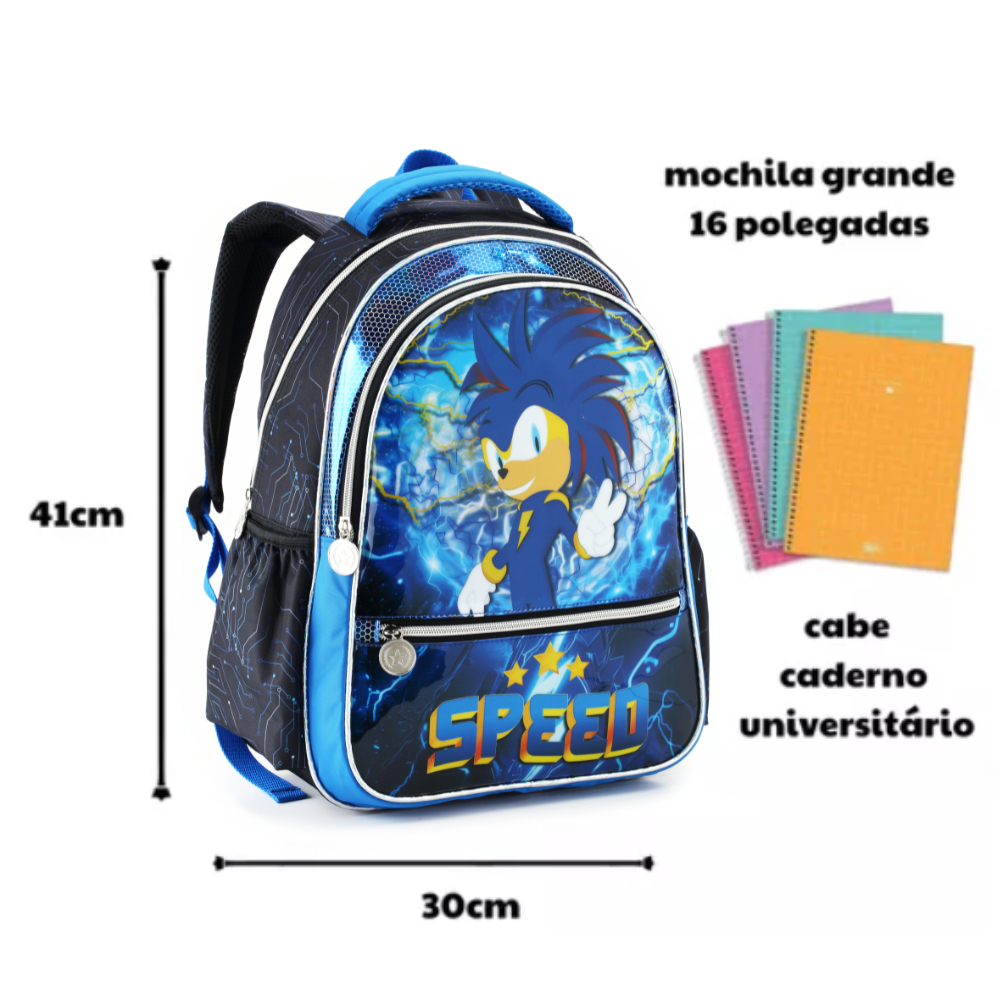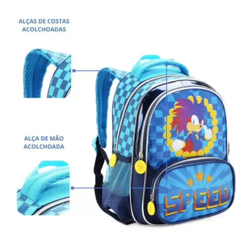 Mochila Escolar Menino Infantil Sonic Speed Resistente Creche G, P Costas