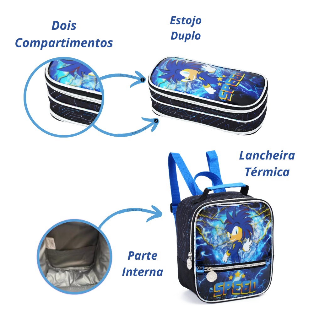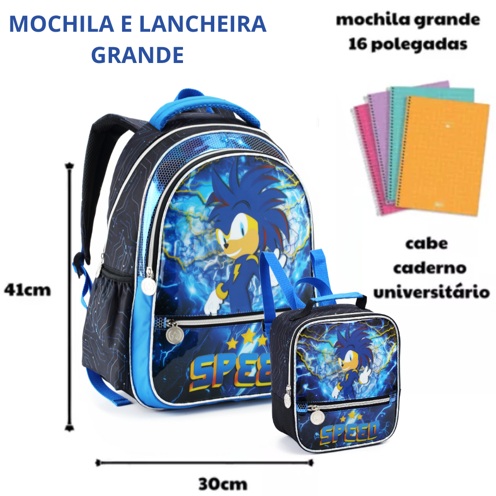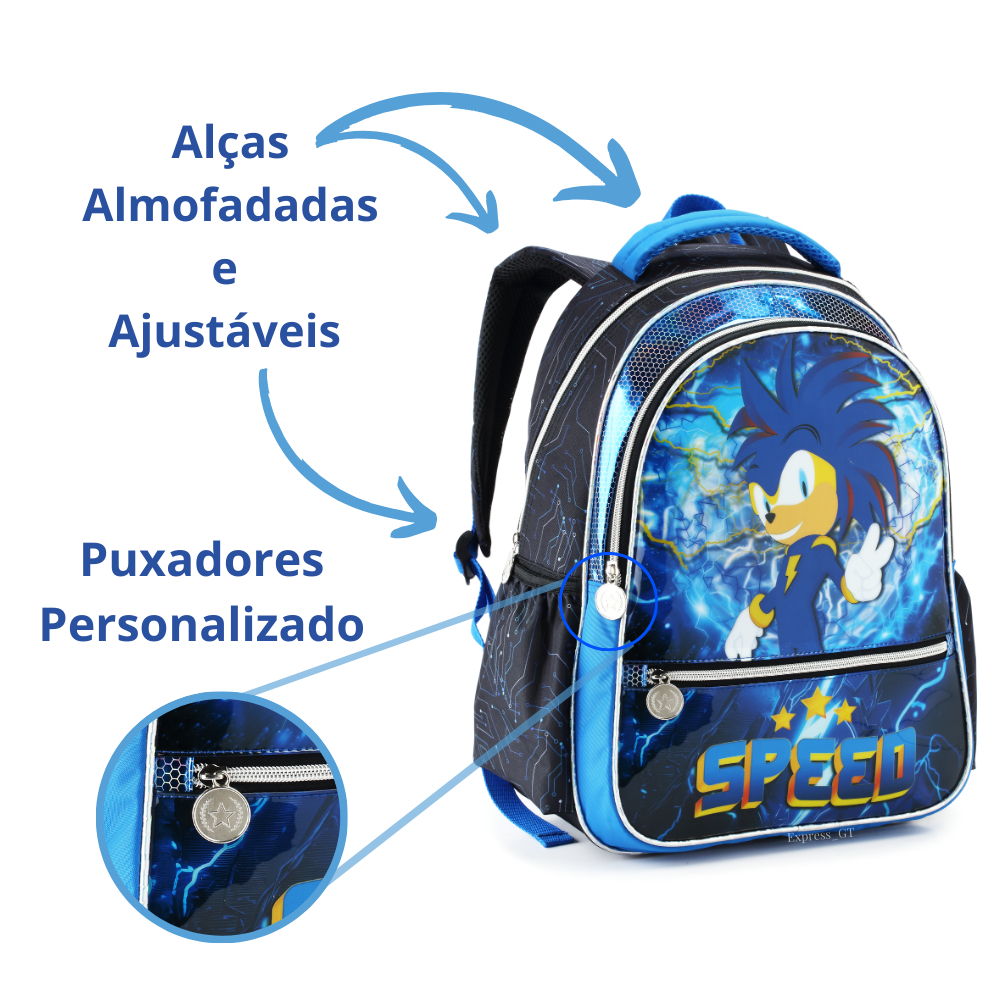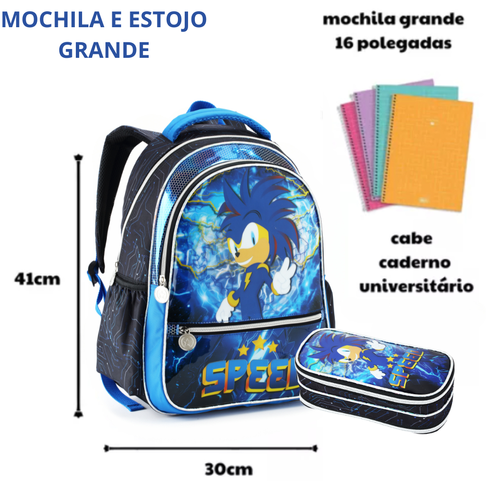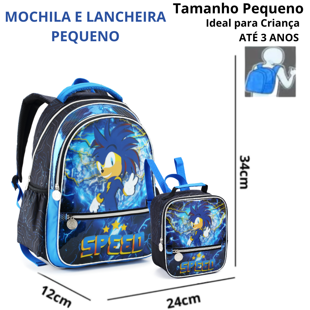 Mochila Escolar Menino Infantil Sonic Speed Resistente Creche G, P Costas