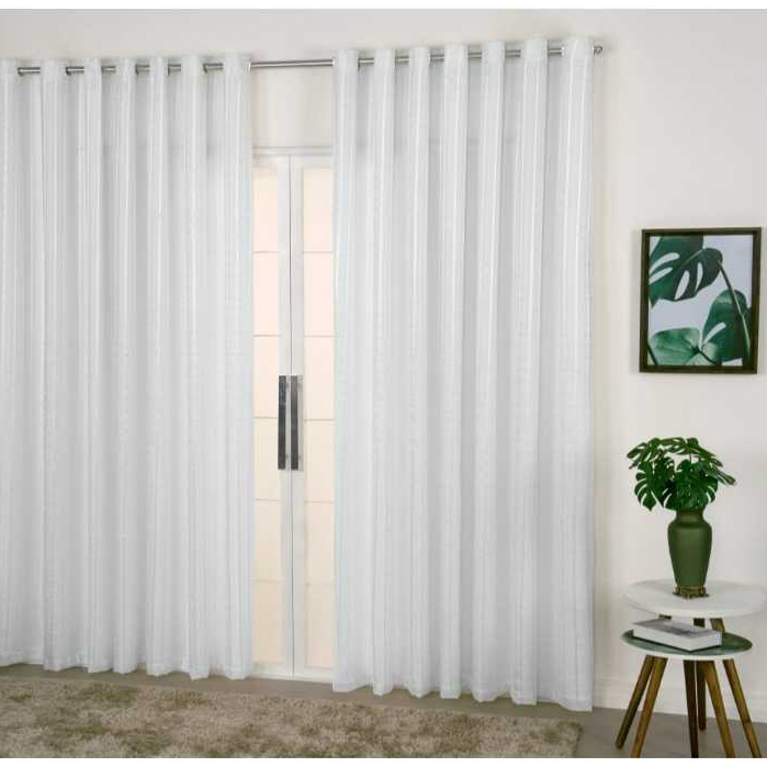 Cortina Voil Xadrez 3,00x2,50 C/forro Microfibra Para Varão