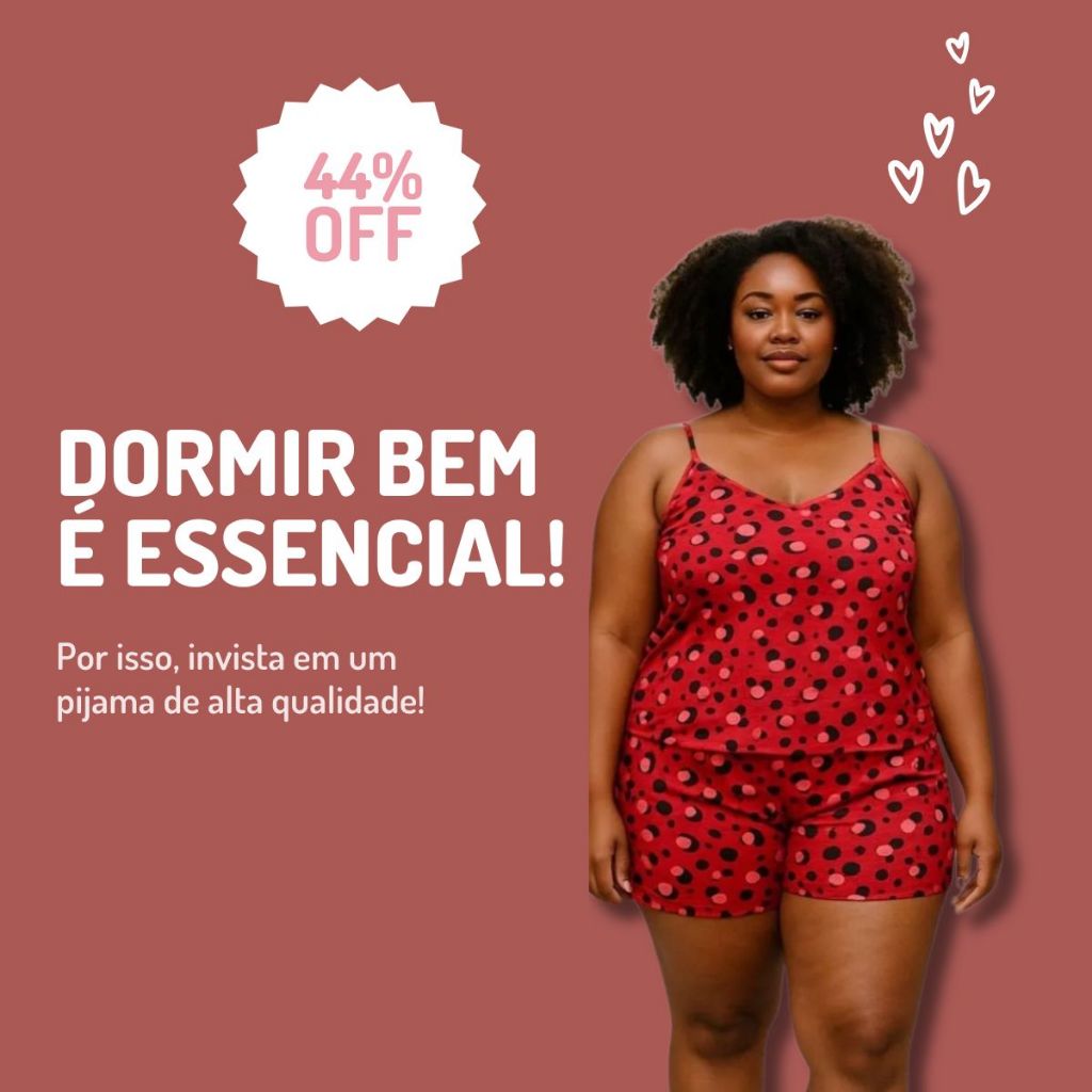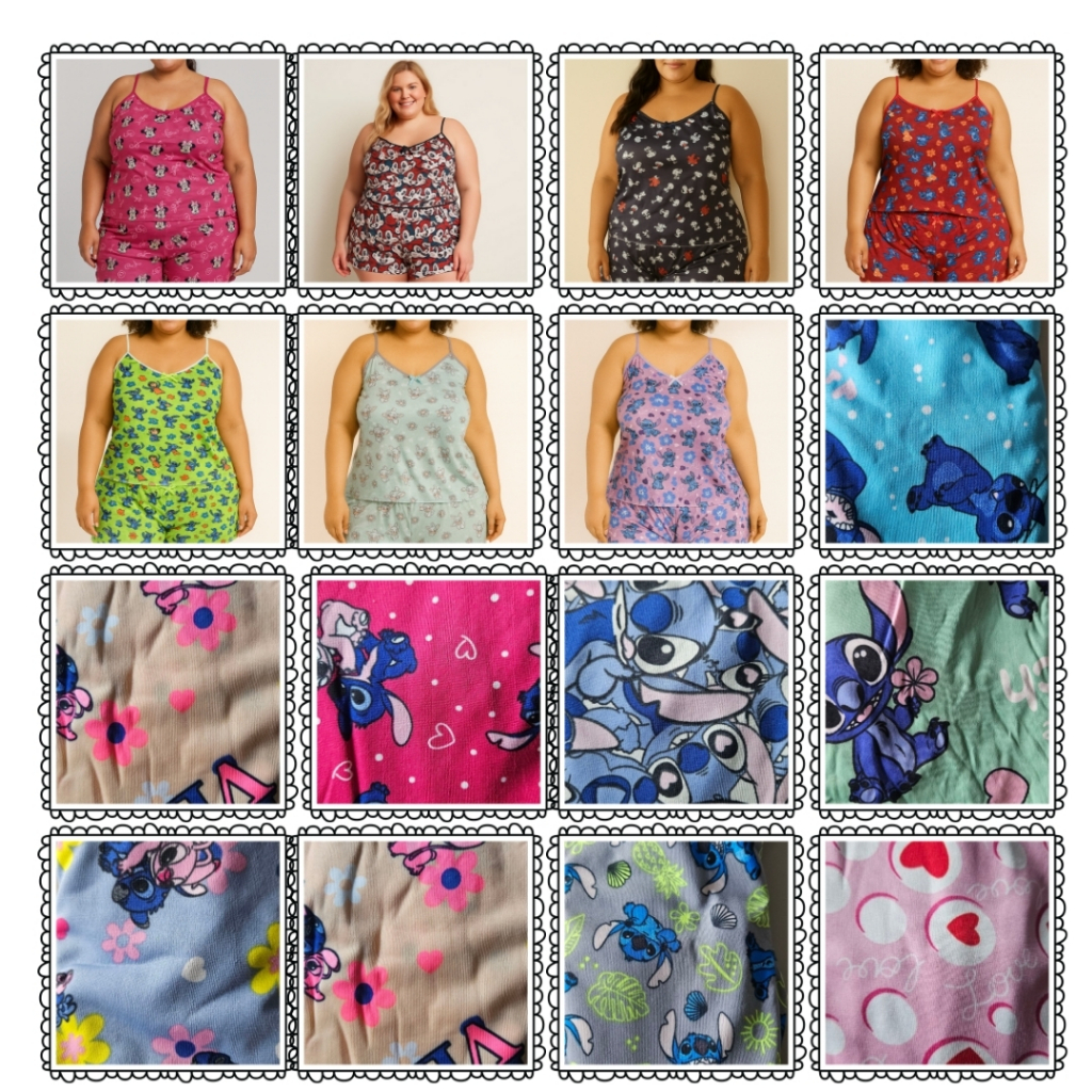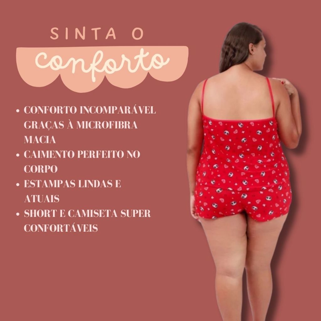 Kit com 3 Conjuntos Pijama Plus Size Feminino Malha Estampada Short e Blusa Alcinha Confortável