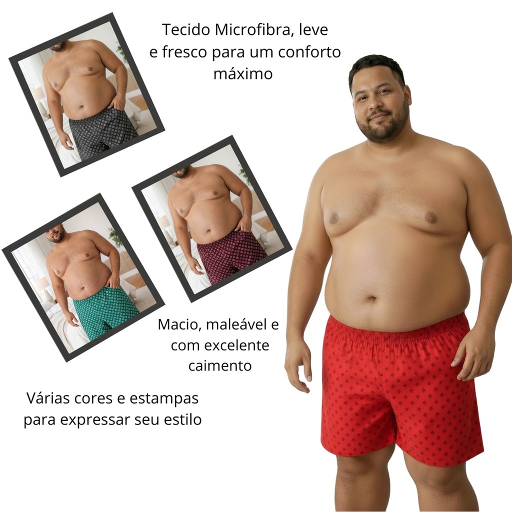 Samba Canção Plus Size XGG Kit com Malha Estampada Leve e Macia Cueca de Dormir Pijama