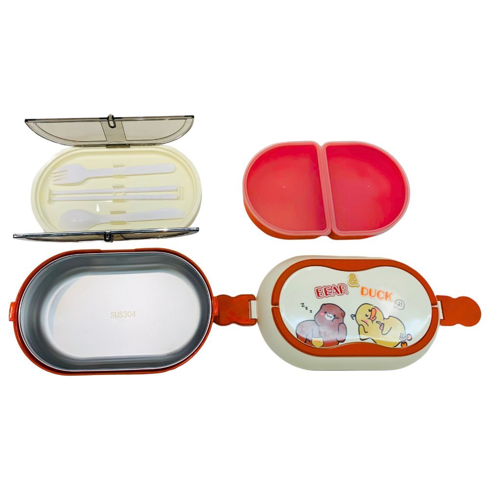 Marmita de Plastico e Inox 4 Divisorias com Trava e Talheres