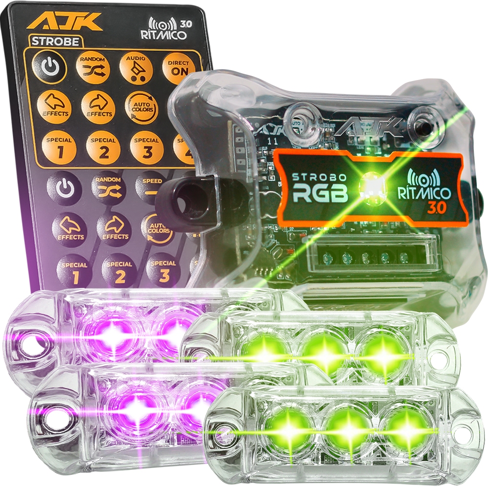 Kit 4 Strobo AJK 3.0 6W RGB Digital Endereçável e Ritmico Faróis 6W + Controle 38 Mil Efeitos